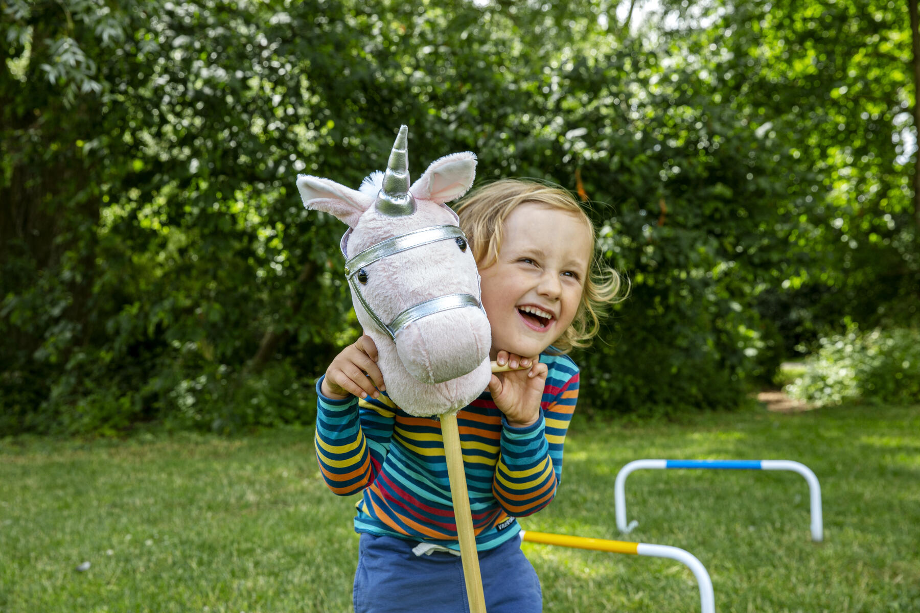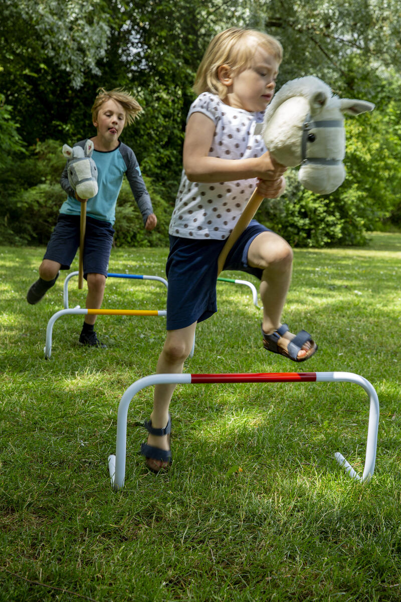 Träna hoppning med din käpphäst. Hinder i trä med ribba som kan justeras 20–60 cm höjd. Hindret är utformat så att ribban lätt faller av och därmed minimerar risken för olyckor. Mått: 116x67x30 cm. Av FSC-märkt trä, MDF och plywood. PVC-fri. Från 3 år.