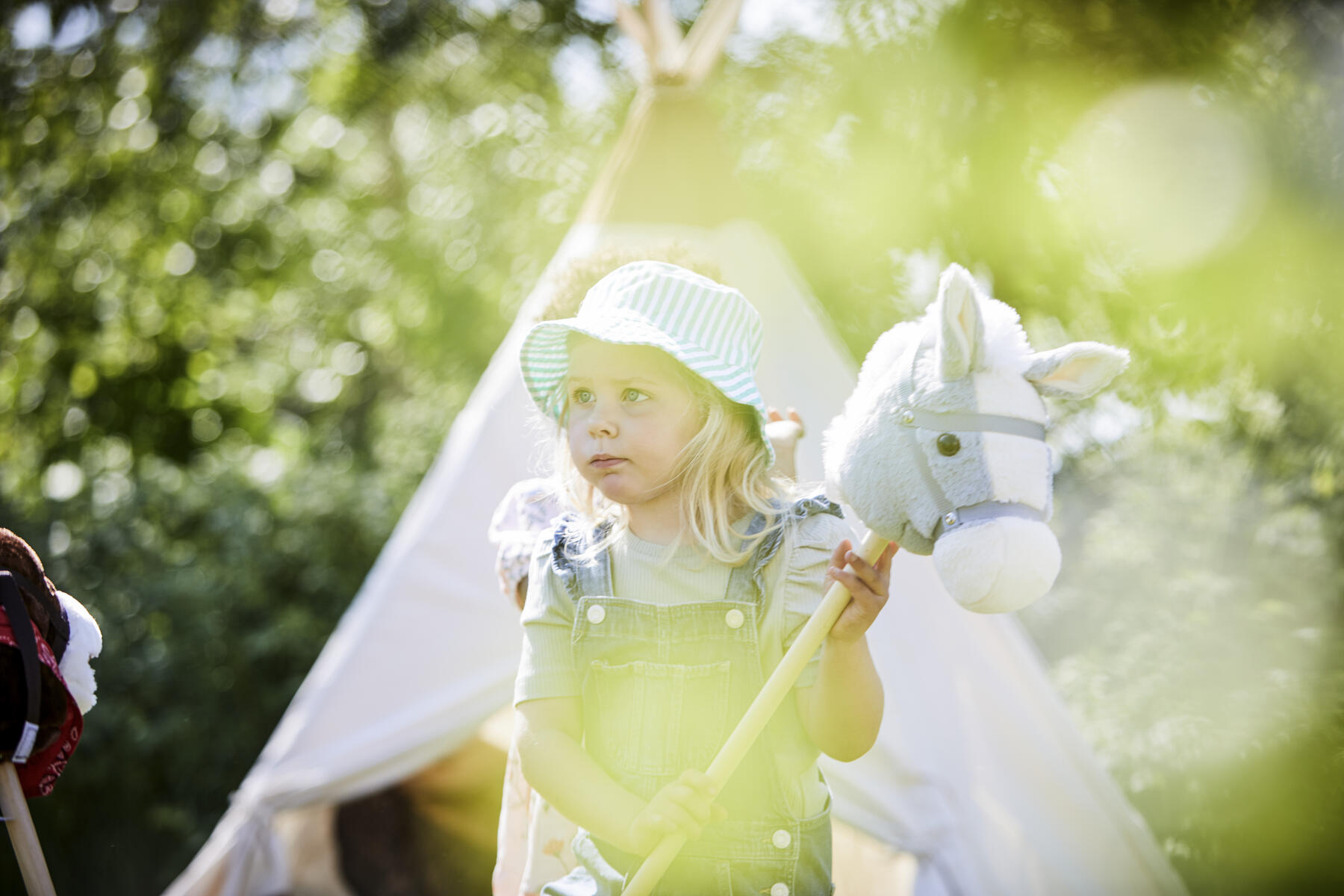 Ge dig ut på en spännande ridtur med käpphästarna. Fina detaljer och skaft av trä. Praktiskt hjul under pinnen gör den ännu snabbare att springa med. Längd 100 cm. PVC-fri. Från 18 månader.