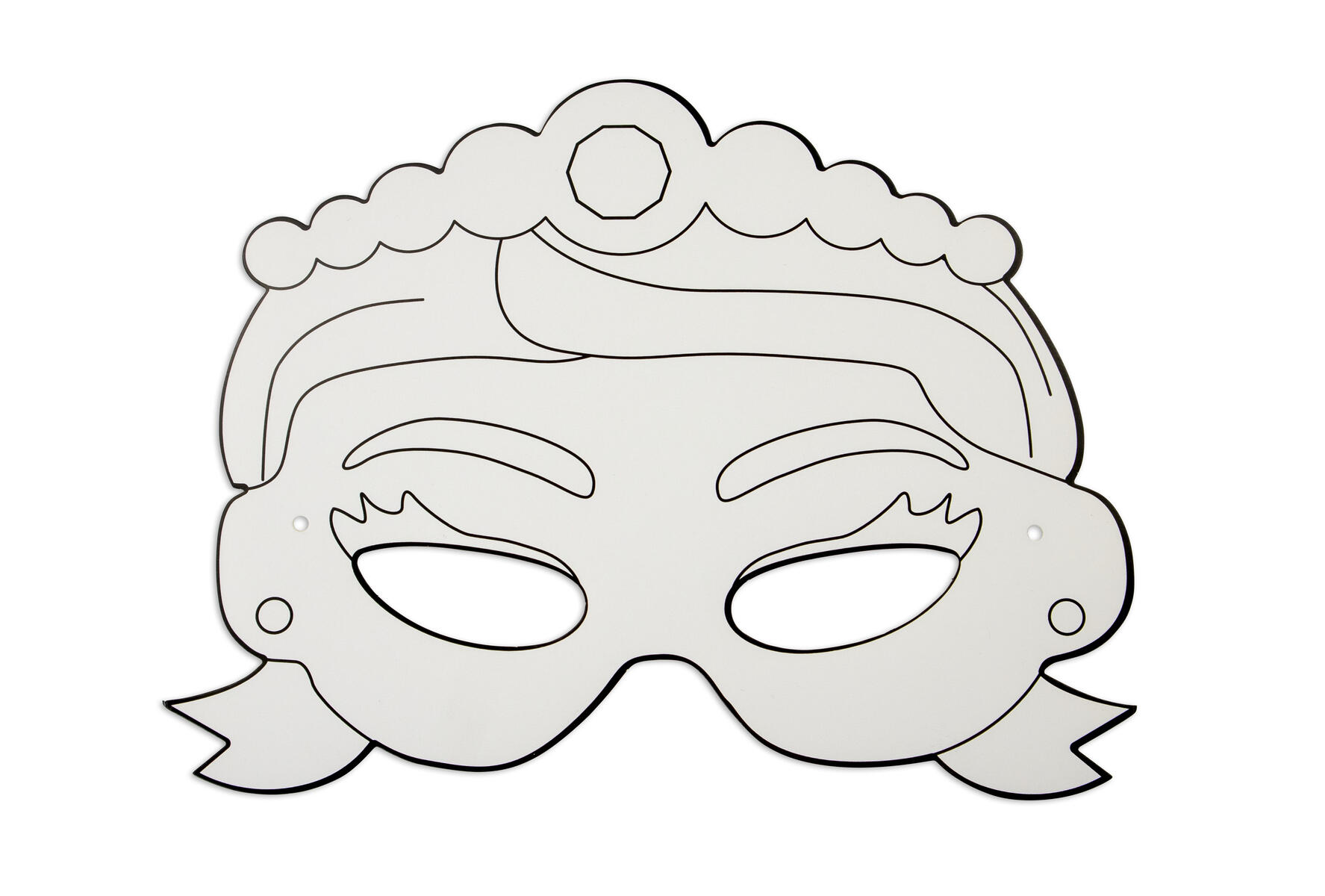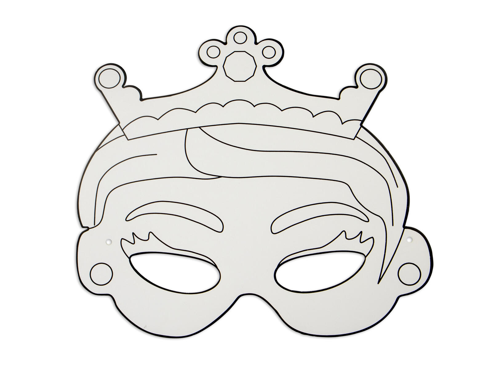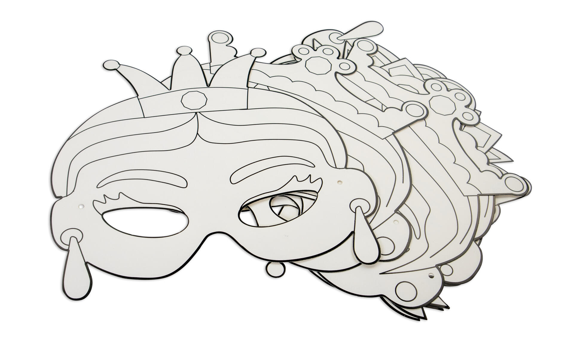 12 st/fp. Vita pappmasker med 4 olika prinsessmotiv. Färglägg och fäst ihop den med den tillhörande gummisnodden. Mått: 23x30 cm. Av kartong, 210 g. PVC-fri.