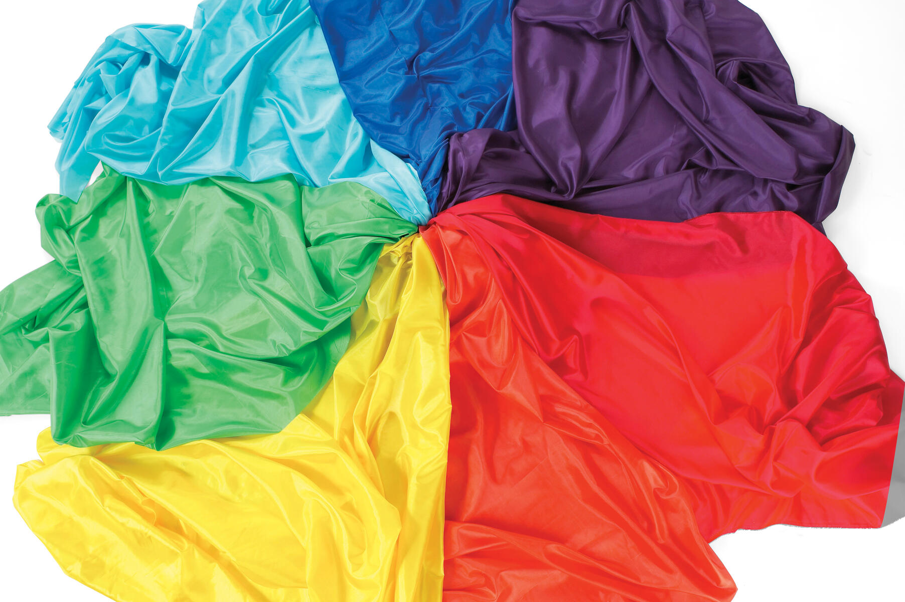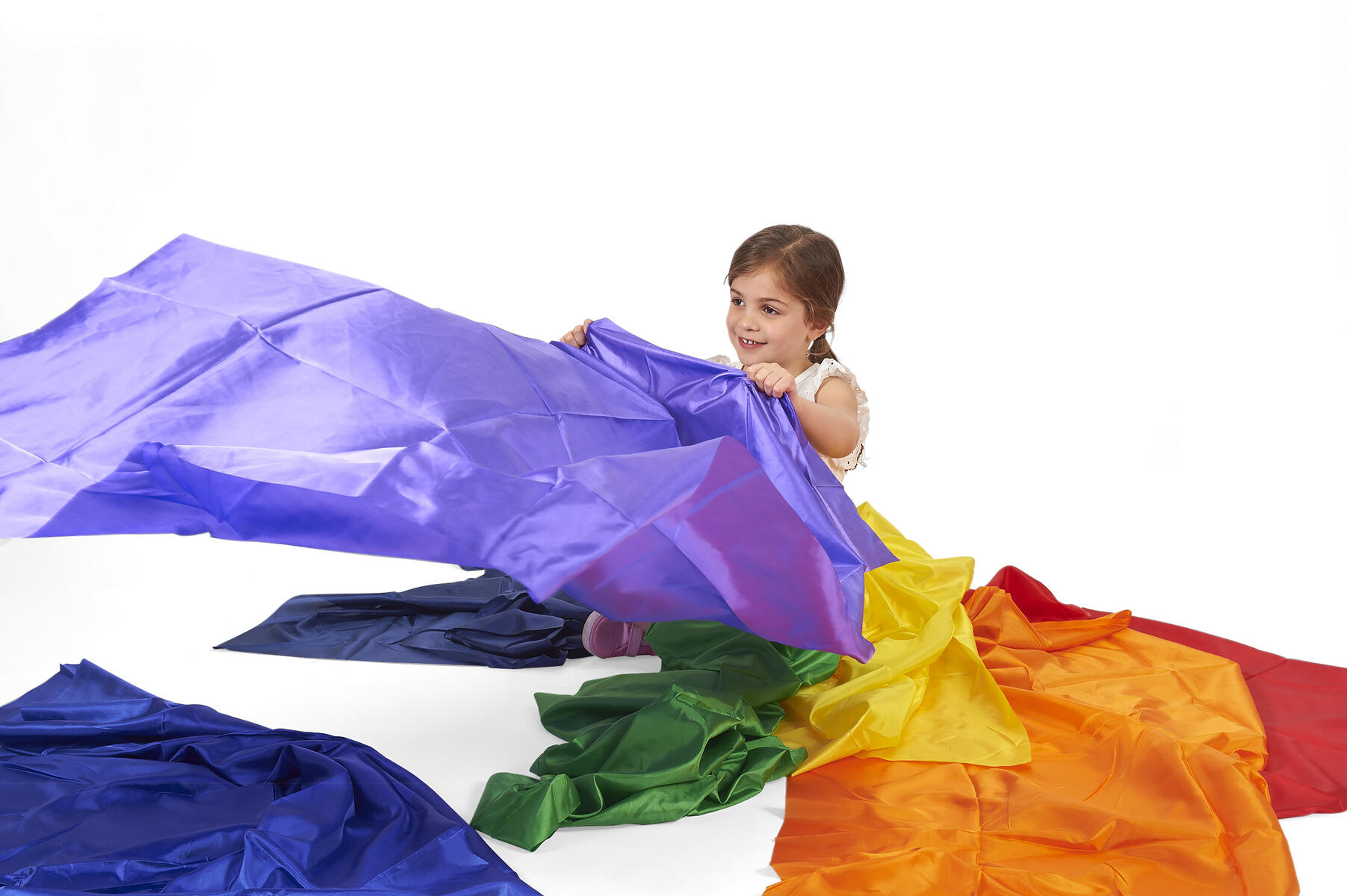 Vackert, glansigt organzatyg i regnbågens sju färger. Används t.ex. till att skapa visuella effekter, till musik och rörelse eller för att skapa en mysig miljö. Innehåller 7 olika färger. PVC-fri.
