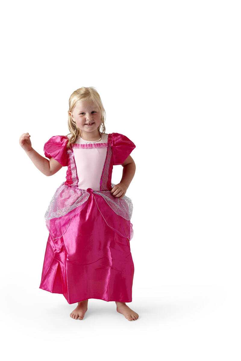Välkommen in i sagornas värld, där prinsar och prinsessor blir verkliga. Förpackningen innehåller kungamantel, prinsjacka och byxa samt prinsessklänning. Storlek 3-5 år. Varje dräkt är av olika tygmaterial och vissa dräkter har delar av polypropen. Handtvätt. PVC-fri. Från 3 år.