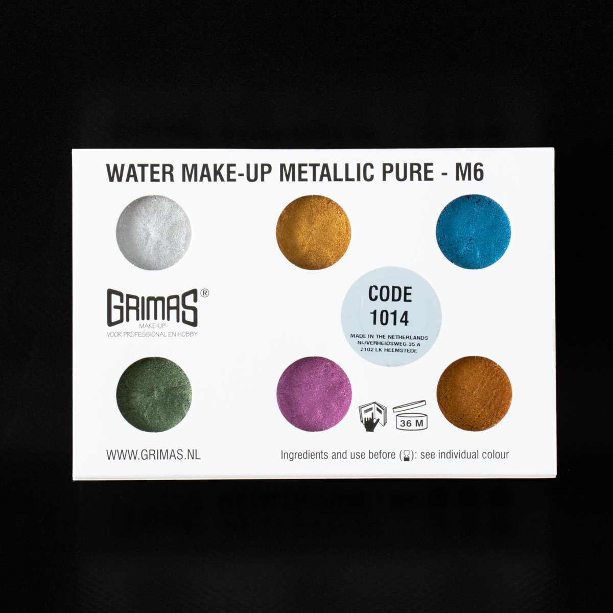 6 färger med 2,5 ml per färg. Vattenbaserad makeup för ansikts- och kroppsmålning. Snabbtorkande, perfekt täckande resultat, oparfymerad och glutenfri. Lätt att ta bort med vatten och tvål.