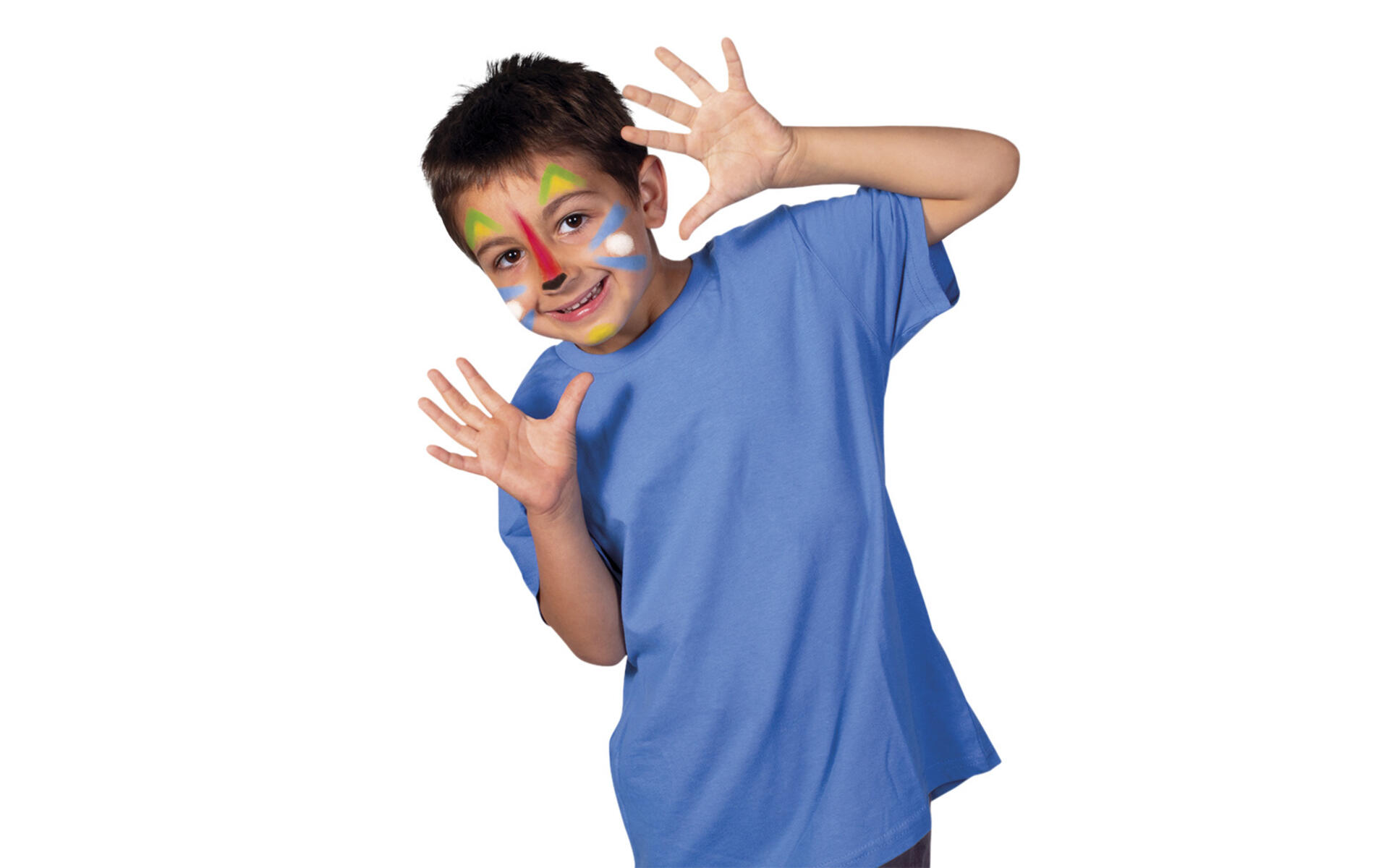 3 st/fp. Set med 3 burkar med 8 ml krämig ansiktsfärg i vit, orange och svart. En målarsvamp och en platt pensel medföljer. Sminket är oljebaserat och frifritt från parabener. Tvättas enkelt bort med vatten och tvål eller babyolja. PVC-fri. Från 3 år.