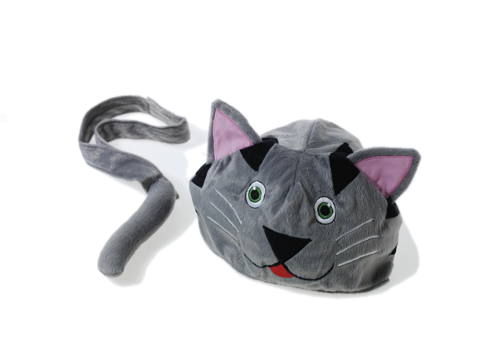 Mössa med resår i nacken. Svansen fästes lätt runt midjan med hjälp av kardborre. Mössa 52 cm omkrets. Av 80 % polyester, 20 % bomull. Handtvätt 40 °C. PVC-fri. Från 18 månader.