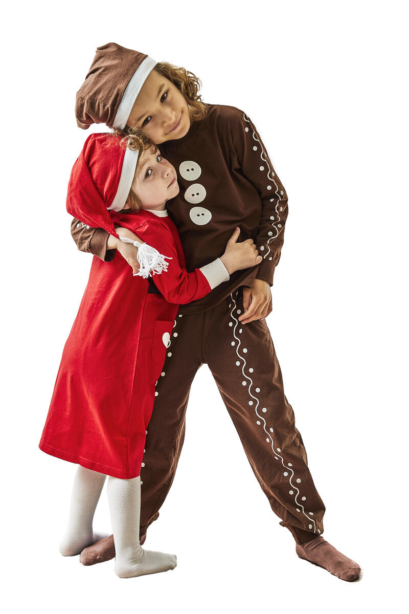 3 dräkter/fp. Dräkter som är lätta att ta på utanpå barnens egna kläder med hjälp av kardborrband i ryggen. Ingår: väst och hatt. 100 % bomull. PVC-fri. Från 3-5 år.