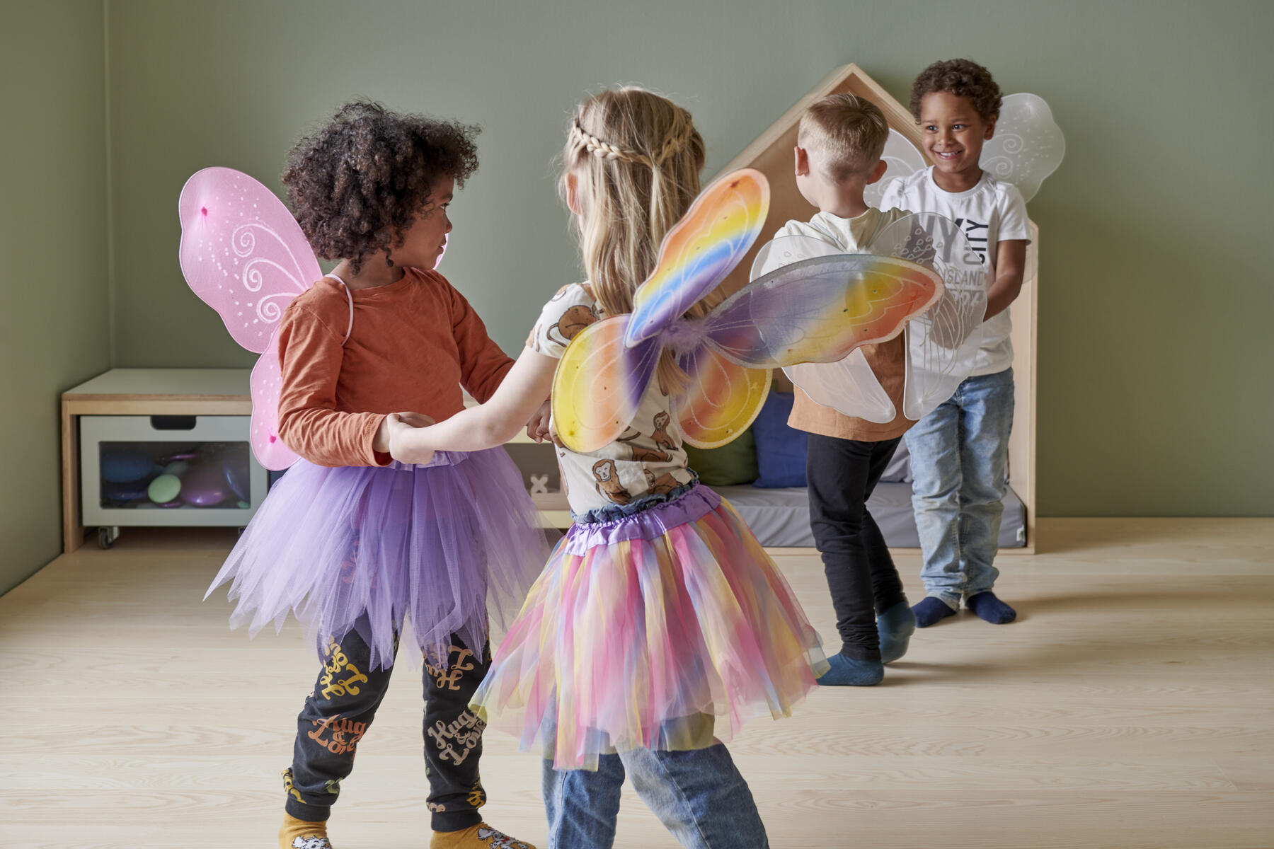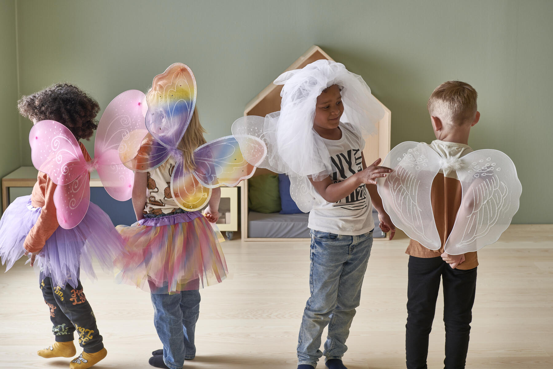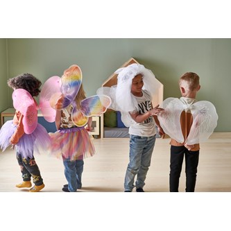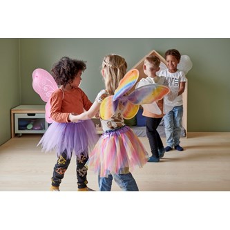 Tyllkjol som kan användas i det oändliga till olika fantasifulla lekar. Med gummiband i midjan, polyestertyg upptill och tyll nedtill på kjolen. PVC-fri. Från 3 år. Handtvätt.