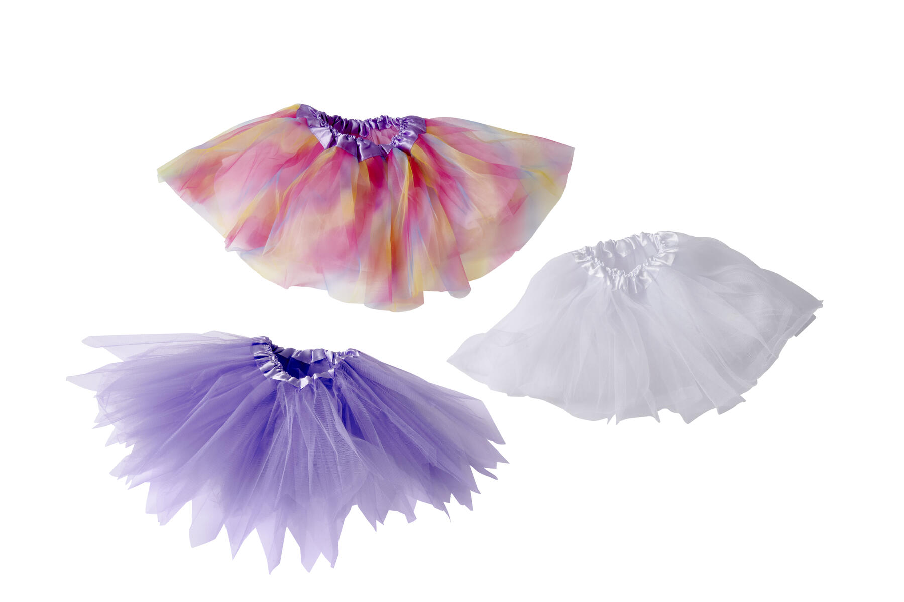 Tyllkjol som kan användas i det oändliga till olika fantasifulla lekar. Med gummiband i midjan, polyestertyg upptill och tyll nedtill på kjolen. PVC-fri. Från 3 år. Handtvätt.