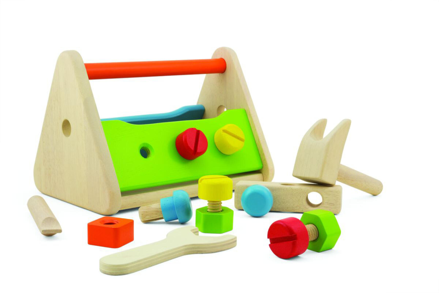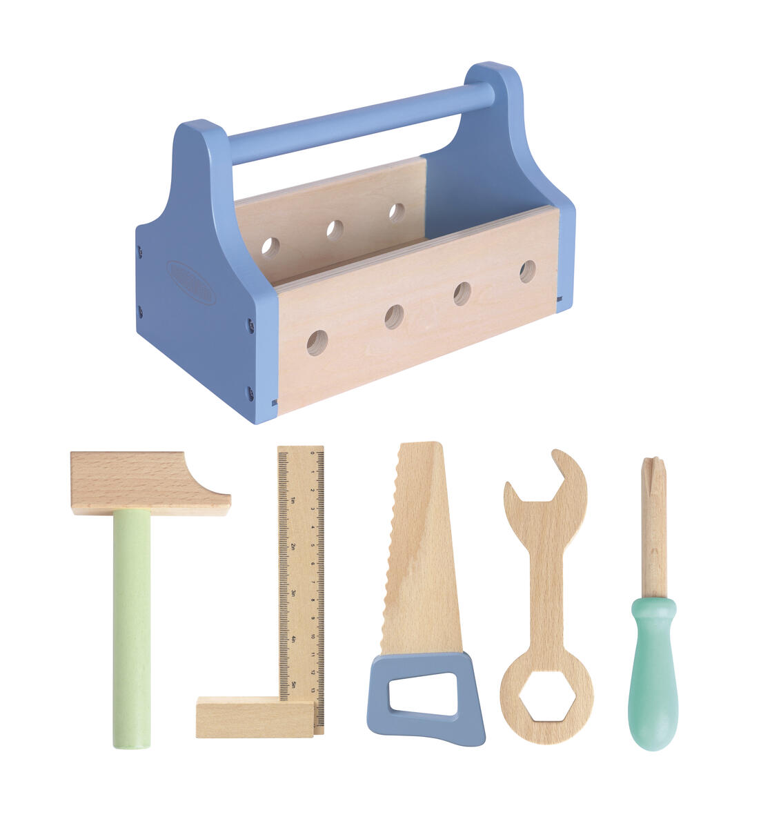 26 delar. Praktisk verktygslåda i FSC-märkt trä för den händiga hantverkaren. Innehåller hammare, skruvar, muttrar, skruvmejsel och linjal. PVC-fri. Från 3 år.