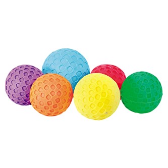 6 st/fp. Bollar som har ett fantastiskt grepp och ändå känns relativt mjuka. Bollarna studsar mycket bra. 6 bollar i olika färger. ø 10 cm. Från 3 år. Av PVC, utan förbjudna ftalater.