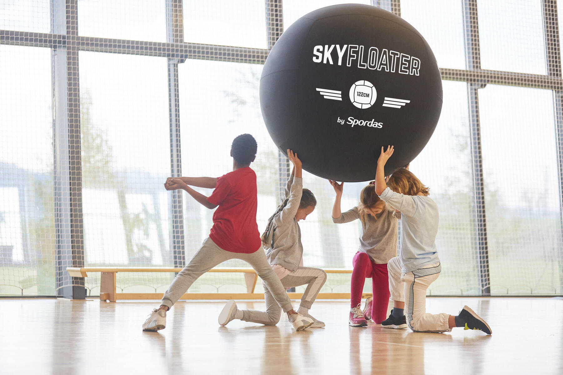 En stor, lätthanterlig boll med låg vikt. Används t.ex. till den officiella sporten kin-ball. Många traditionella bollövningar blir kreativa och roliga med denna jätteboll som tränar balans, rörlighet och uppmärksamhet. Bollen kan kastas eller sparkas och användas både inne och ute. Mått: ø 122 cm. Blåsa av latex och hölje av nylon.