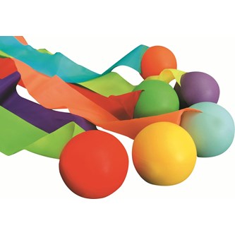 6 st/fp. Olikfärgade bollar färgglada band. Kan med fördel användas vid kast- och fångövningar. Bollarna är lätta och fungerar även bra med t.ex. tennisracket. Bandens mått: L46xB5 cm. Boll av PU och banden är av nylon. PVC-fri. Från 3 år.