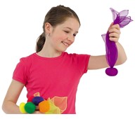 En gummiboll som har färgglada band i en lång svans efter sig. Detta gör den idealisk för kast- och fångövningar då den är lätt att se. PVC-fri. Från 3 år.