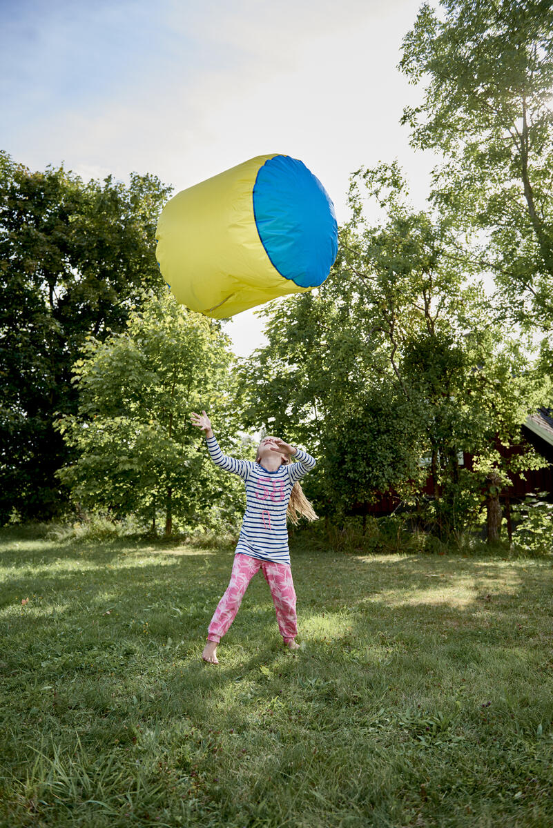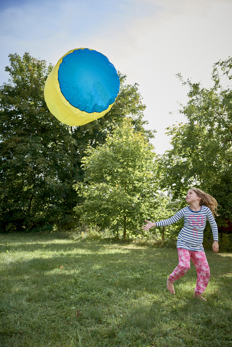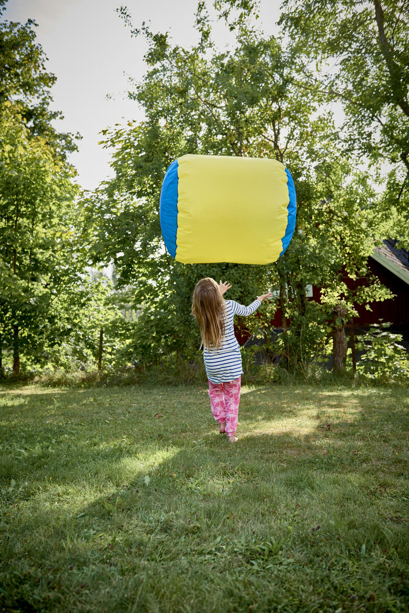 En rolig ballongboll med mjuk yta. Bollen rör sig i ett lugnare tempo som gör det lättare för alla att vara med. Pumpas för hand eller med kompressor med vanlig bollnippel. Av polyester och latex. PVC-fri. Mått ø 50 cm.