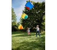 3 st/fp. Setet innehåller 3 fjäderlätta former som bokstavligen flyger i luften. Innehåller formerna kub, cylinder och pyramid. Passar bra för användning både inom- och utomhus. Formerna rör sig i ett lugnare tempo som gör det lättare för alla att vara med. Används t.ex. vid samarbetsövningar och kasta- och fångaaktiviteter, både med och utan nät. Då svävbollarna inte har någon innerblåsa rekommenderar vi en pump som har hög kapacitet, förslagsvis 71996, eller en lövblåsare. Det tar då ca 5 min för att blåsa upp alla 3. Med vanlig pump tar det ca 15-20 minuter. Mått: 0,91 cm. Av nylon och polyester. PVC-fri.