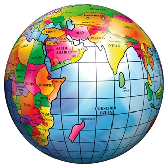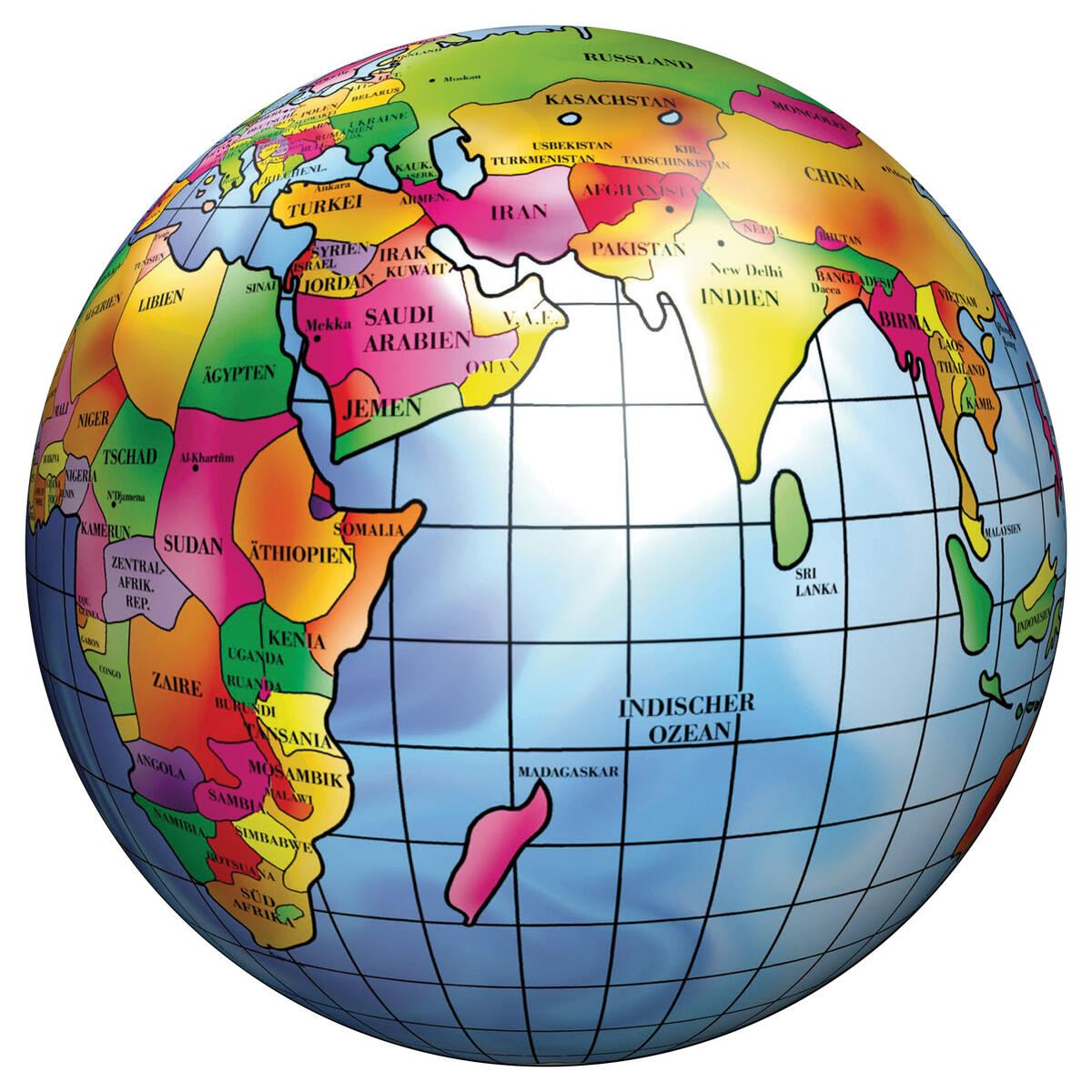 En uppblåsbar, pedagogisk glob som stimulerar barnens naturliga nyfikenhet på vårt jordklot. Angränsande länder i avvikande färger. Engelsk text. ø 40 cm. Av PVC, utan förbjudna ftalater.