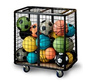 Bollvagn av metall. Praktisk förvaringsvagn för bollarna, sandleksakerna etc. Kraftig konstruktion med 2 låsbara, starka hjul. Locket kan kompletteras med hänglås (ingår ej). Mått: 94x54x90 cm. Vikt 24 kg.