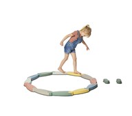 12 st/fp. 6 st stenar och 6 st stockar som är sammankopplade med ett justerbart rep. Antiglid för att stå stabilt. Avståndet kan justeras så att barnen utvecklar sin balans successivt. Mått på sten: topp ø 23, botten ø 32 och höjd 13 cm. Mått på stock: L50xB14 cm. Av PP. PVC-fri. Från 3 år.