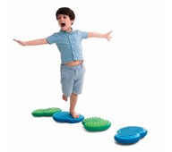 6 st/fp. Tränar barnens koordination, balans och förmåga att bedöma avstånd. Stenarna är triangulära och har gummifötter. Innehåller 3 stenar i storlek 25x25x25 cm, höjd 4,5 cm samt 3 st i storlek 36x36x36 cm, höjd 8,5 cm. kan användas såväl ute som inne, men förvaras inomhus. Av polyetenplast. PVC-fri. Från 2 år.