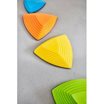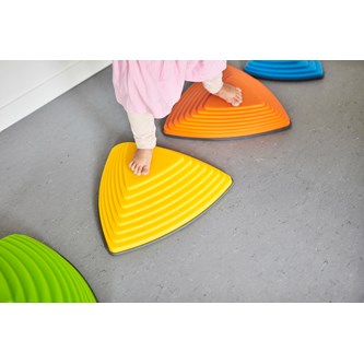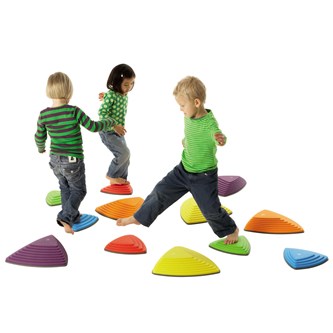 6 st/fp. Tränar barnens koordination, balans och förmåga att bedöma avstånd. Stenarna är triangulära och har gummifötter. Innehåller 3 stenar i storlek 25x25x25 cm, höjd 4,5 cm samt 3 st i storlek 36x36x36 cm, höjd 8,5 cm. kan användas såväl ute som inne, men förvaras inomhus. Av polyetenplast. PVC-fri. Från 2 år.