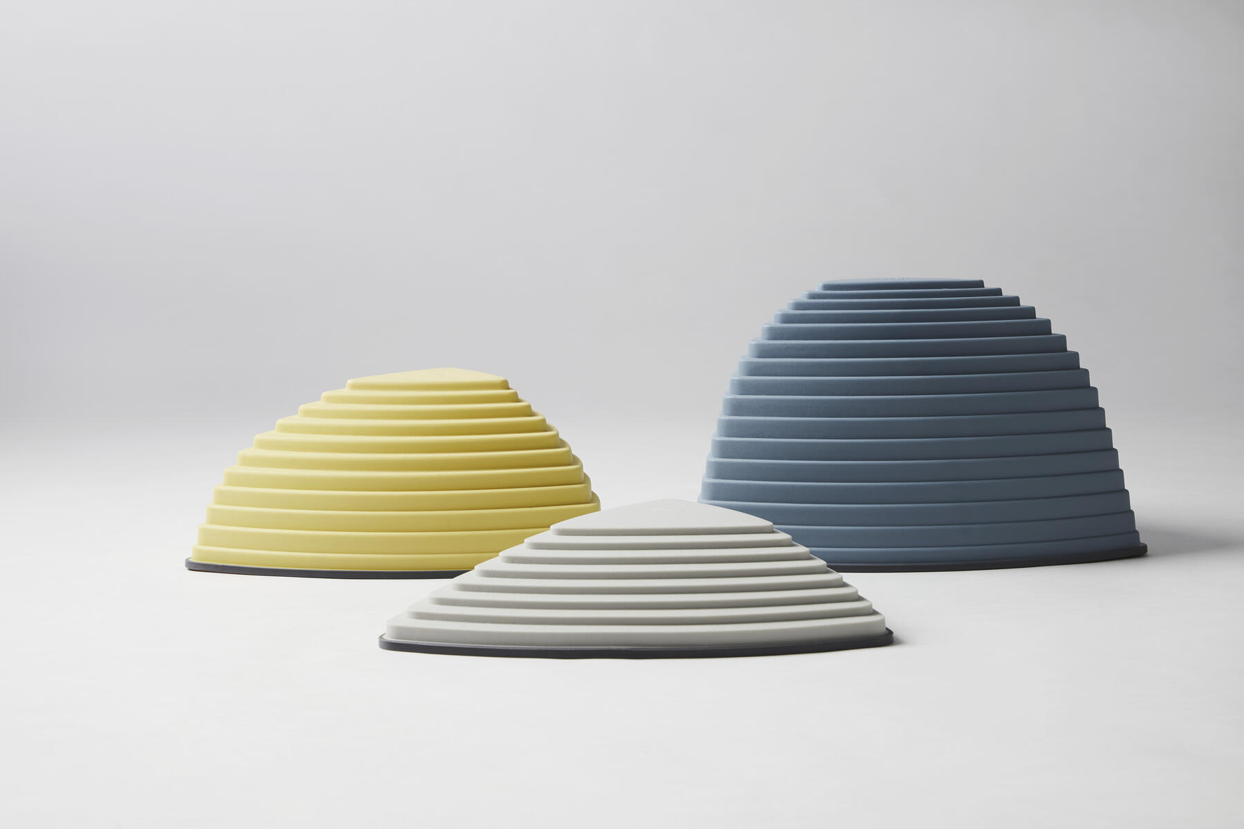 3 bergskullar i olika höjder: 8,5 cm, 17 cm och 23,5 cm. De höga topparna gör barnen förtroliga med höjder samtidigt som deras motorik tränas. Alla toppar är försedda med gummifötter som hindrar dem från att glida samtidigt som man skyddar golvet. Kan användas såväl ute som inne, men förvaras inomhus. Av PP och TPE. PVC-fri. Från 2 år.