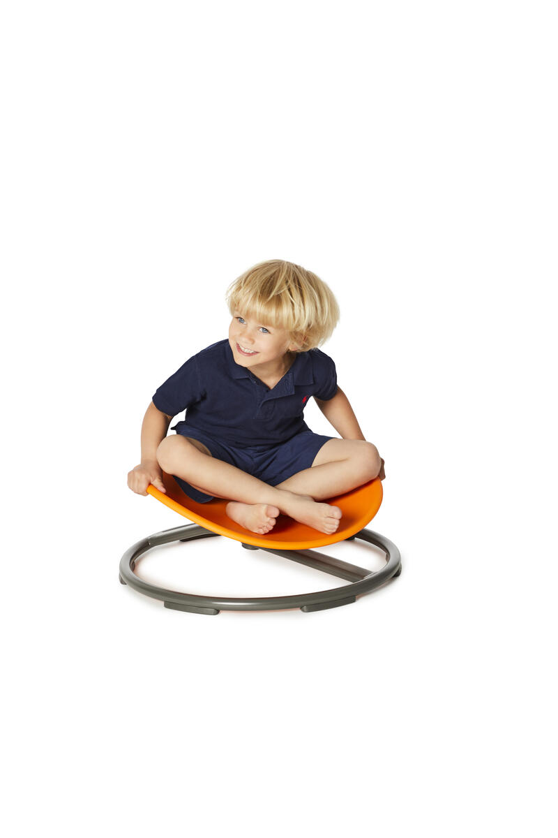 En spännande minikarusell som barnen kan snurra runt på. Sätet är vinklat för att barnen skall kunna sätta fart genom att flytta kroppsvikten fram och tillbaka. Färg orange. Yngre barn kan även få den i rörelse genom att ta fart med fötterna. Av PP, TPE och stål. PVC-fri. Från 3-10 år.
