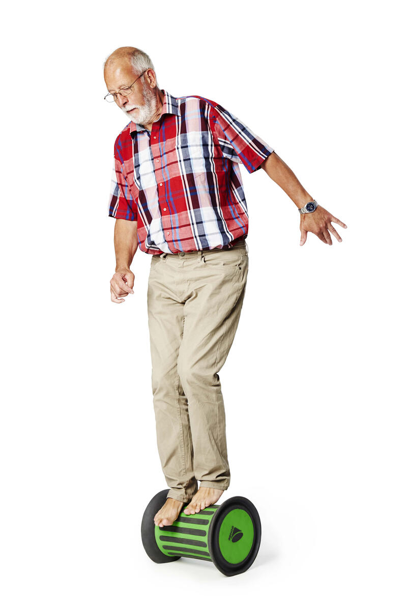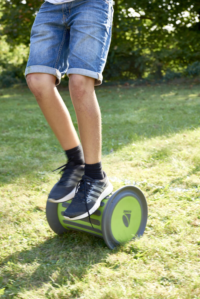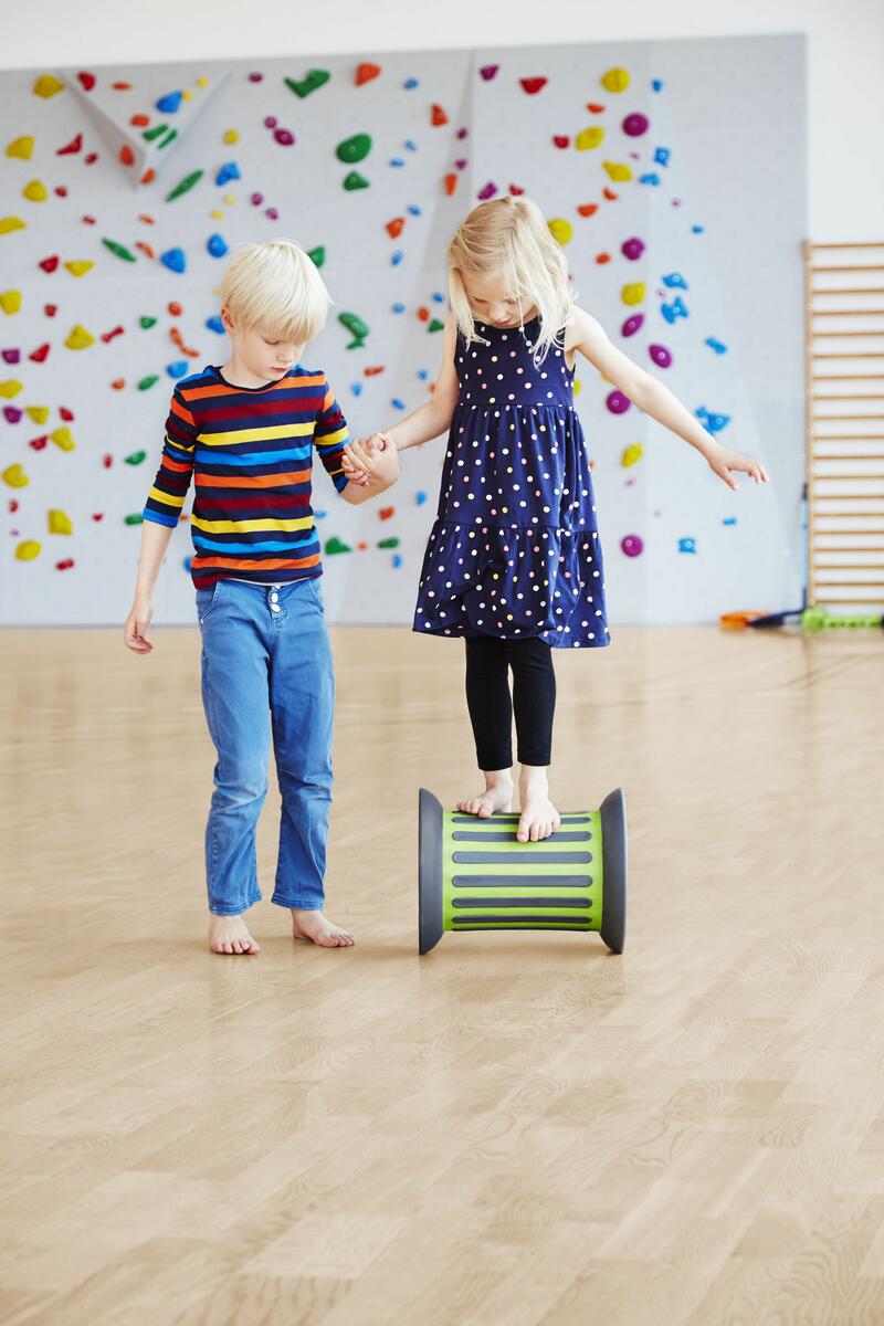 Ett rullande hjul i snygg design som tränar balanssinnet. Denna Roller är fylld med 2,5 kg sand som gör att den rullar långsammare och därför lämpar sig bättre för yngre barn. Den erbjuder en progressiv utmaning både för yngre barn som bara tränar på att hålla balansen med hjälp av en väns hand, och för äldre barn som sätter fart och far omkring utan att falla av. Kan användas både inom- och utomhus. Med gummilister som reducerar hastigheten och dessutom gör så att man inte halkar. Längd 35,5 cm. Av polypropen och gummi. PVC-fri. Från 3 år.