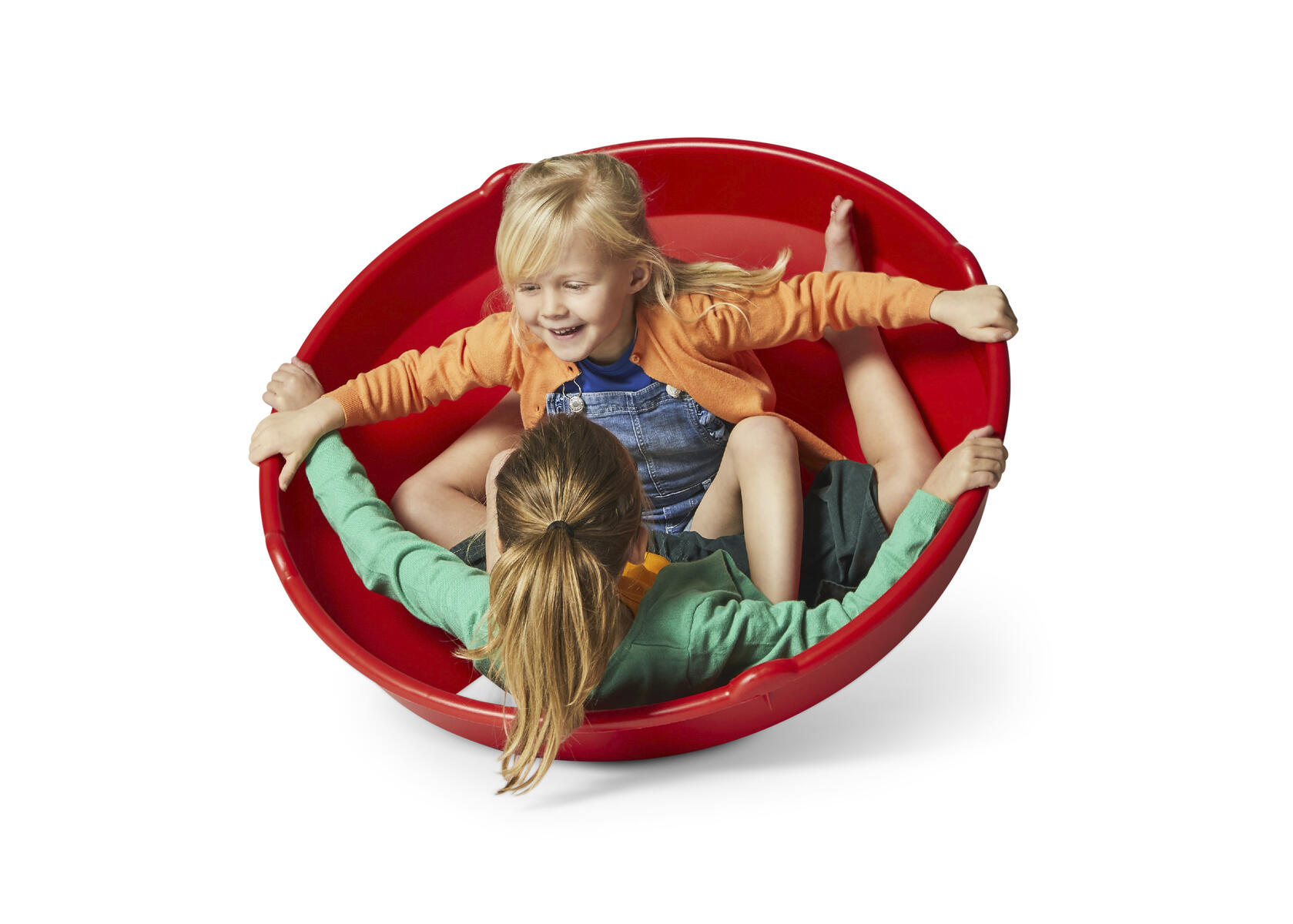 En spännande minikarusell som barnen kan snurra runt på. Sätet är vinklat för att barnen skall kunna sätta fart genom att flytta kroppsvikten fram och tillbaka. Färg orange. Yngre barn kan även få den i rörelse genom att ta fart med fötterna. Av PP, TPE och stål. PVC-fri. Från 3-10 år.