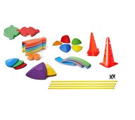 7 delar. Balansplattor som kan sättas ihop till en mängd olika motorikbanor. 6 olika färger. 6 av delarna har måtten 35,5x11,5 cm, och 1 del är 15,5x8,5 cm. Alla delar är 4,5 cm höga. Av plast med glidsäkra gummikanter. Stapelbara för enkel förvaring. Av PP och TPE. PVC-fri. Från 2 år.