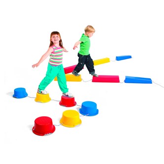 Köp hela setet med Step Stones, taktila stigar samt kopplingar. Setet passar bra för lek på golvet, barnen övar balans och koordination. Stigarna är ergonomiska i formen och är designad speciellt för att få barnen att uppleva utsträckning och spänning i hålfoten. Barnen övar även upp sin förmåga att gå i olika terränger. Av PP och TPE. PVC-fri. Från 3 år.