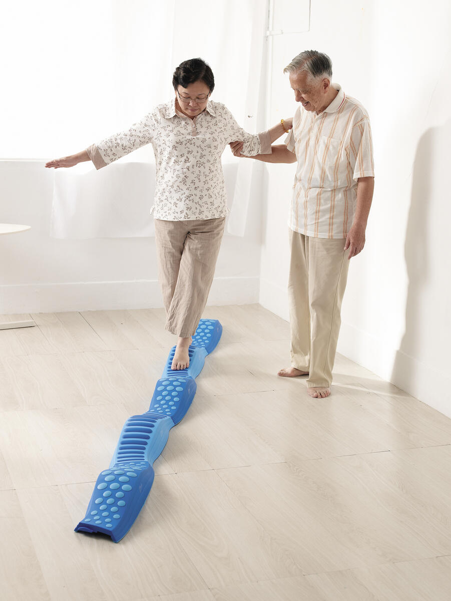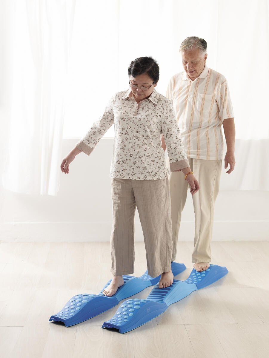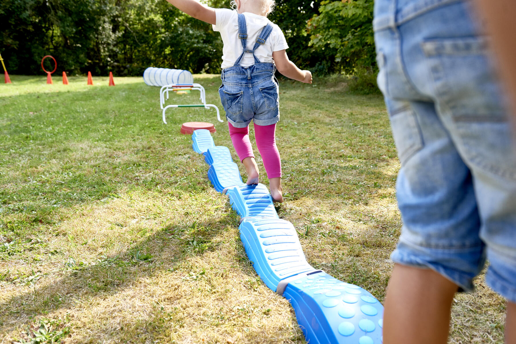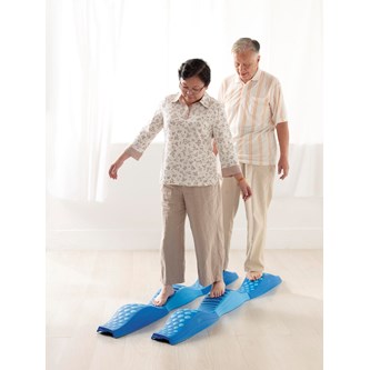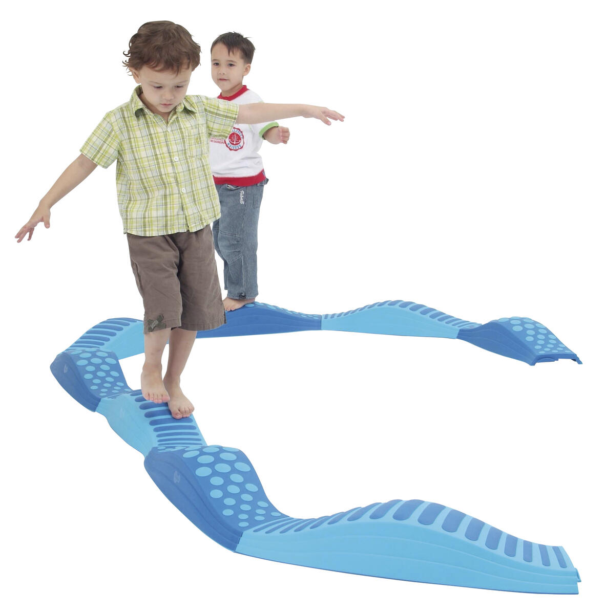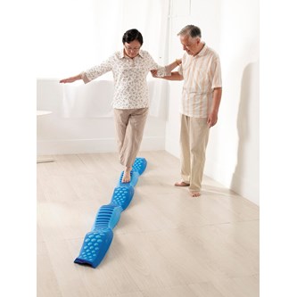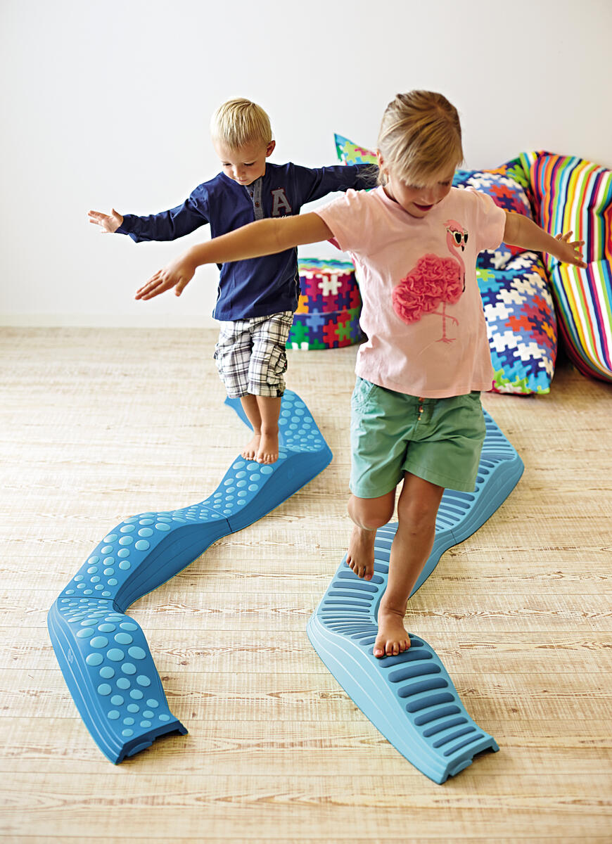 Detta är en imitation av stigarna i naturen: barnen får en känsla av att gå barfota utomhus även inomhus. Den ergonomiska formen är designad speciellt för att ge utsträckning och spänning i hålfoten. Ger övning att gå i olika terränger. Mått: längd ca 53–68 cm, höjd ca 4–11 cm. Av polypropen och TPE-plast. PVC-fri. Från 3 år.