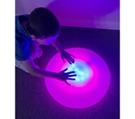 Ett stabilt ljusbord med ett smart plasttråg för sand och kladdig lek. Ljusbordet kan användas på ett bord eller direkt på golvet. Det finns 6 stora knappar för att skifta färg vilket stimulerar sinnena och observationsförmågan. Plasttråget håller sand och kladdig lera/färg på plats vilket ger möjlighet till taktila och sensoriska upplevelser med ljus. Mått: 60x60x12 cm. 10,2 kg. Material: Akrylplast.