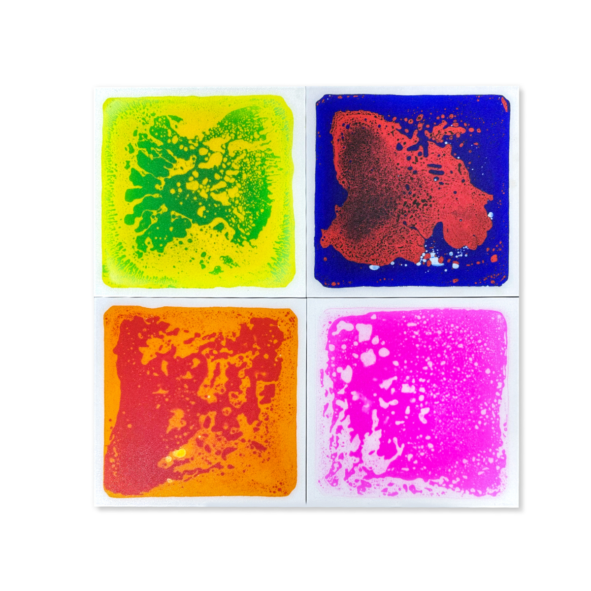 4 st/fp. En underbar och taktil upplevelse som uppmuntrar till rörelse och att upptäcka plattorna. De är fyllda av en flytande gel som vid tryck flyttar sig och skapar olika mönster. De tål att hoppas på och köras över med en rullstol eller lekbil. De fungerar även på ett bord där man kan trycka på dem med handen. Mått 30x30 cm.