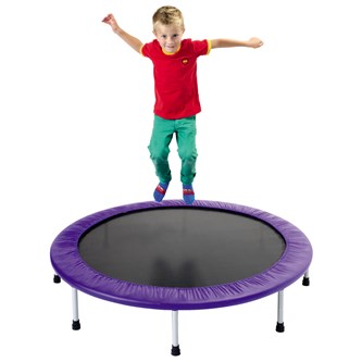 Att hoppa är roligt och ger bra träning för hela kroppen. Med metallfjädrar. Endast för inomhusbruk. Yttermått 140 cm. Mått på duk 115 cm. Maxvikt 25 kg.