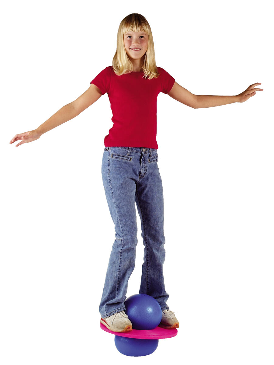 En rund balansbräda som förbättrar både balans och koordination. På ovansidan finns ett enkelt labyrintmönster vilket ger barnen fler utmaningar vid användandet. 3 bollar ingår. Mått: 54x40x2,5 cm. Av polyeten och TPR. Max 60 kg. PVC-fri. Från 3 år.