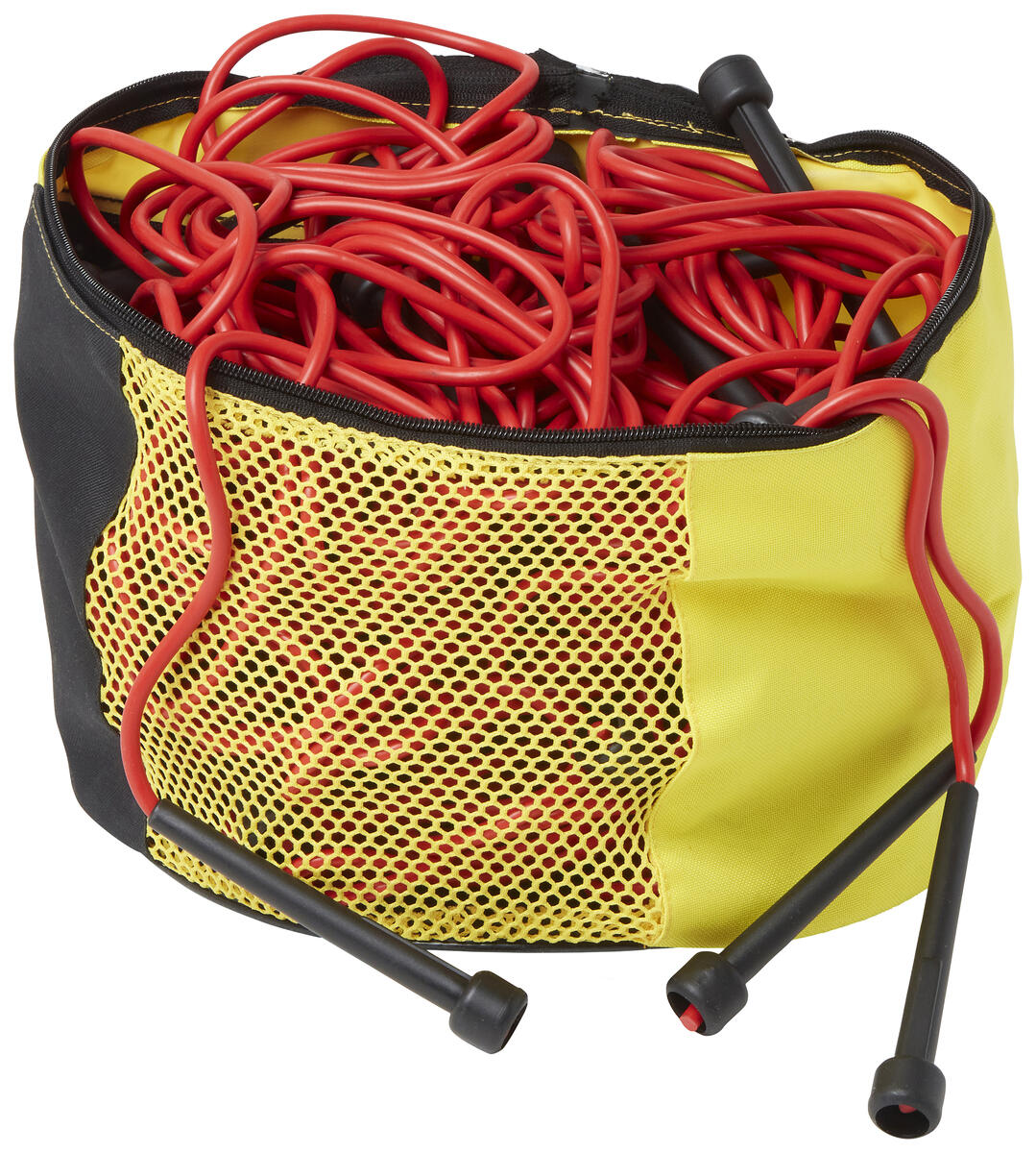 25 st/fp. En stor förpackning med 25 slitstarka hopprep med hållbara handtag. Längd: 210 cm. En praktisk förvaringsväska medföljer. Hopprep av PVC, fri från ftalater. Väska av polyester. Från 3 år.