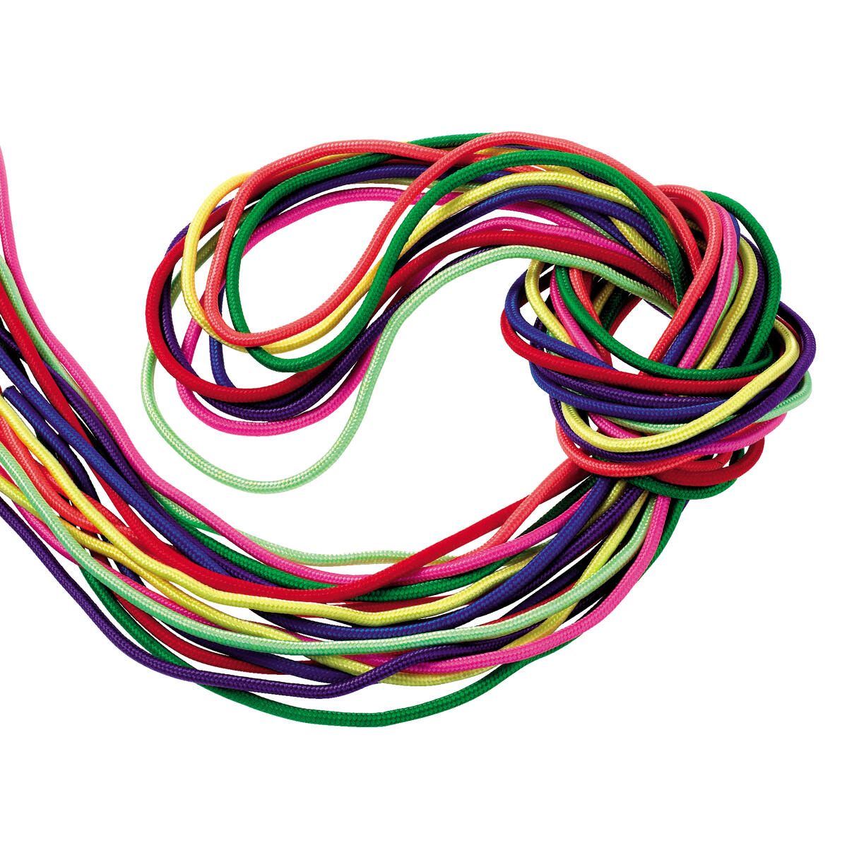 8 st/fp. Färgglada, mjuka, flätade hopprep för gymnastiken. Material i polyester och polypropen. Längd: 3 m, ø 1 cm. PVC-fri. Från 3 år.