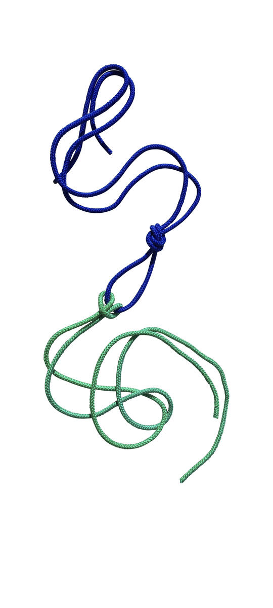 Textilrep med lackerade trähandtag, som låter repet snurra utan att sno sig. Blandade färger. PVC-fri.