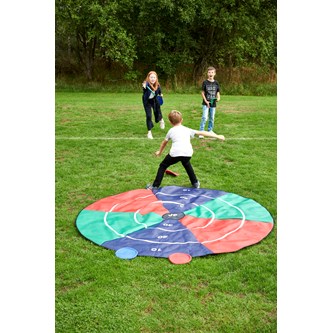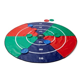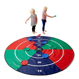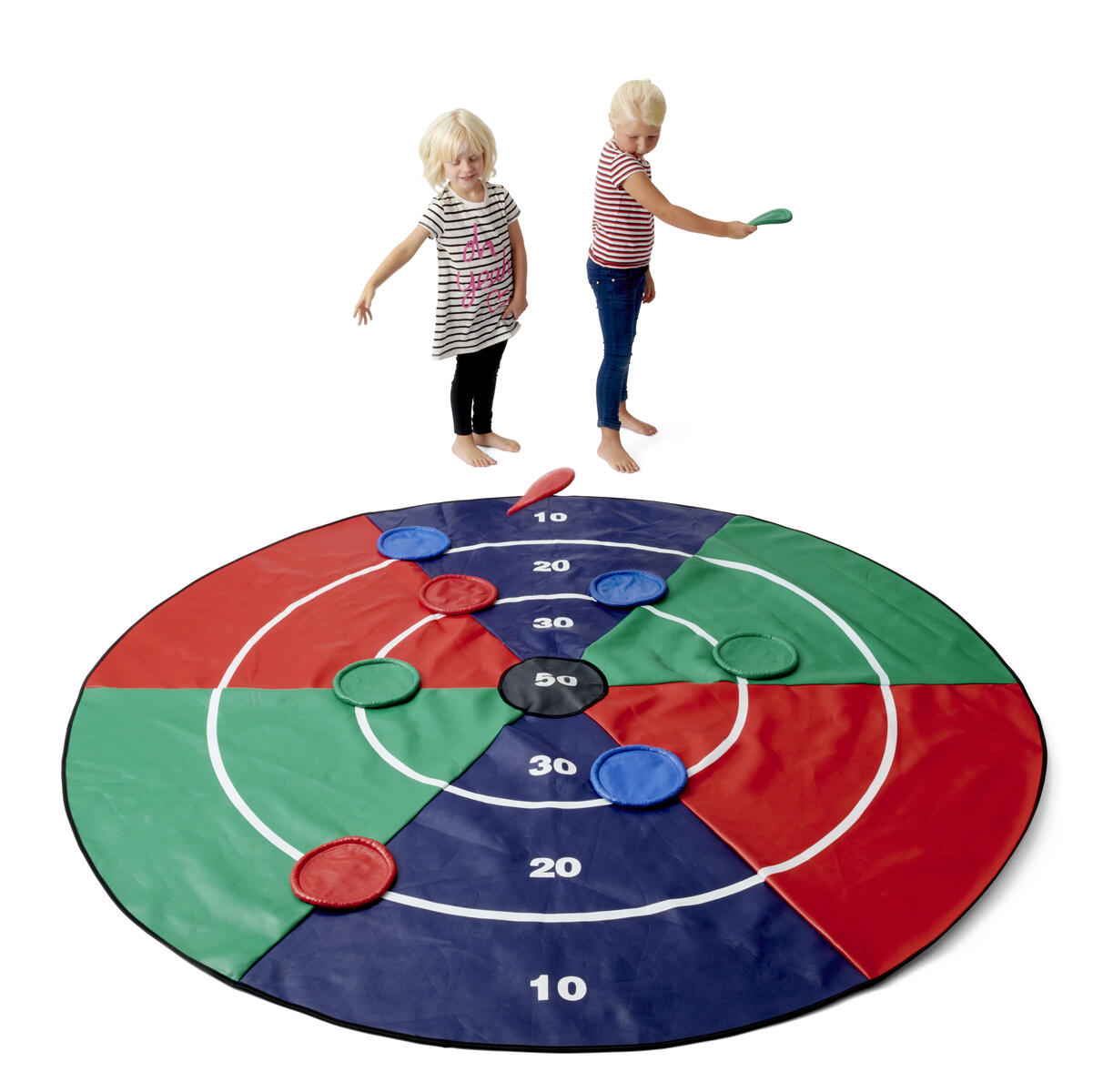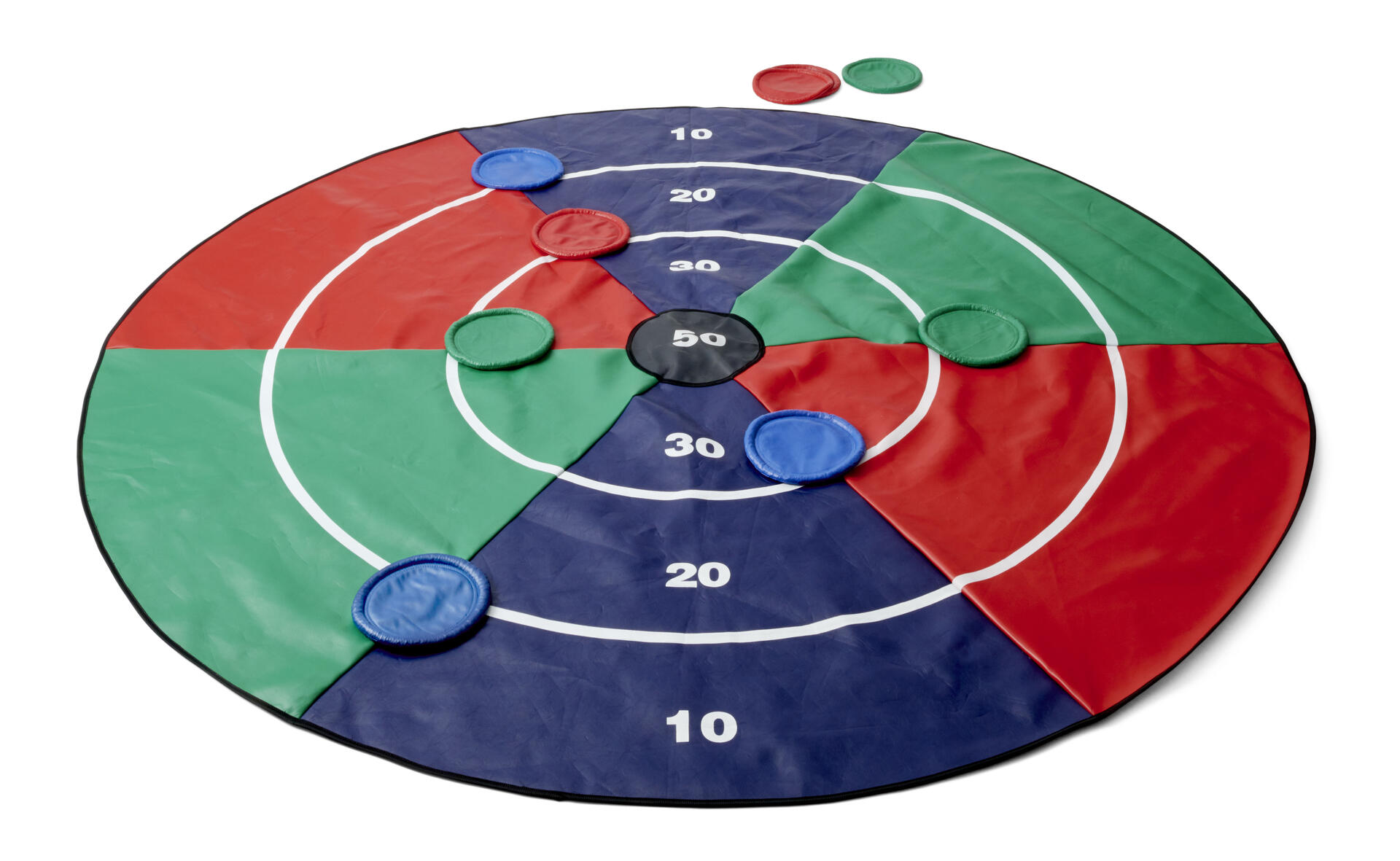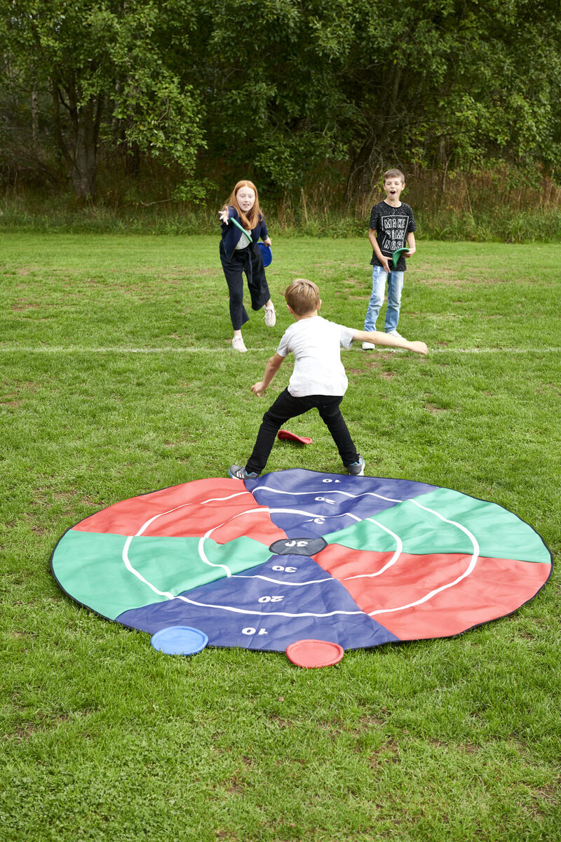 En extra stor variant av ett klassiskt kastspel, där det gäller att samla så många poäng som möjligt och träna sin precision. ø 2,1 m. 12 st frisbeediscar i 4 färger ingår. Av PU. Från 4 år.