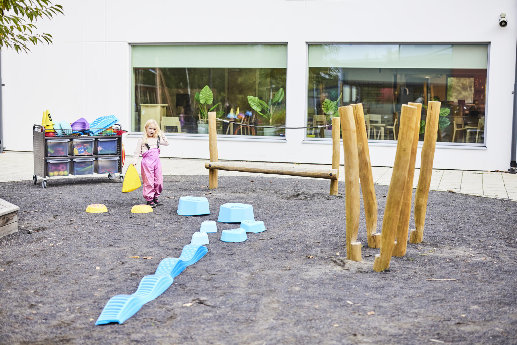 32 delar. Stor motorikbana som ger många möjligheter till en mer aktiv skoldag och rast. Innehåller: 6 koner med hål, 8 fästen till stav, 8 stavar till kon, 5 lekringar, 4 allroundkoner och 1 löpstege.
