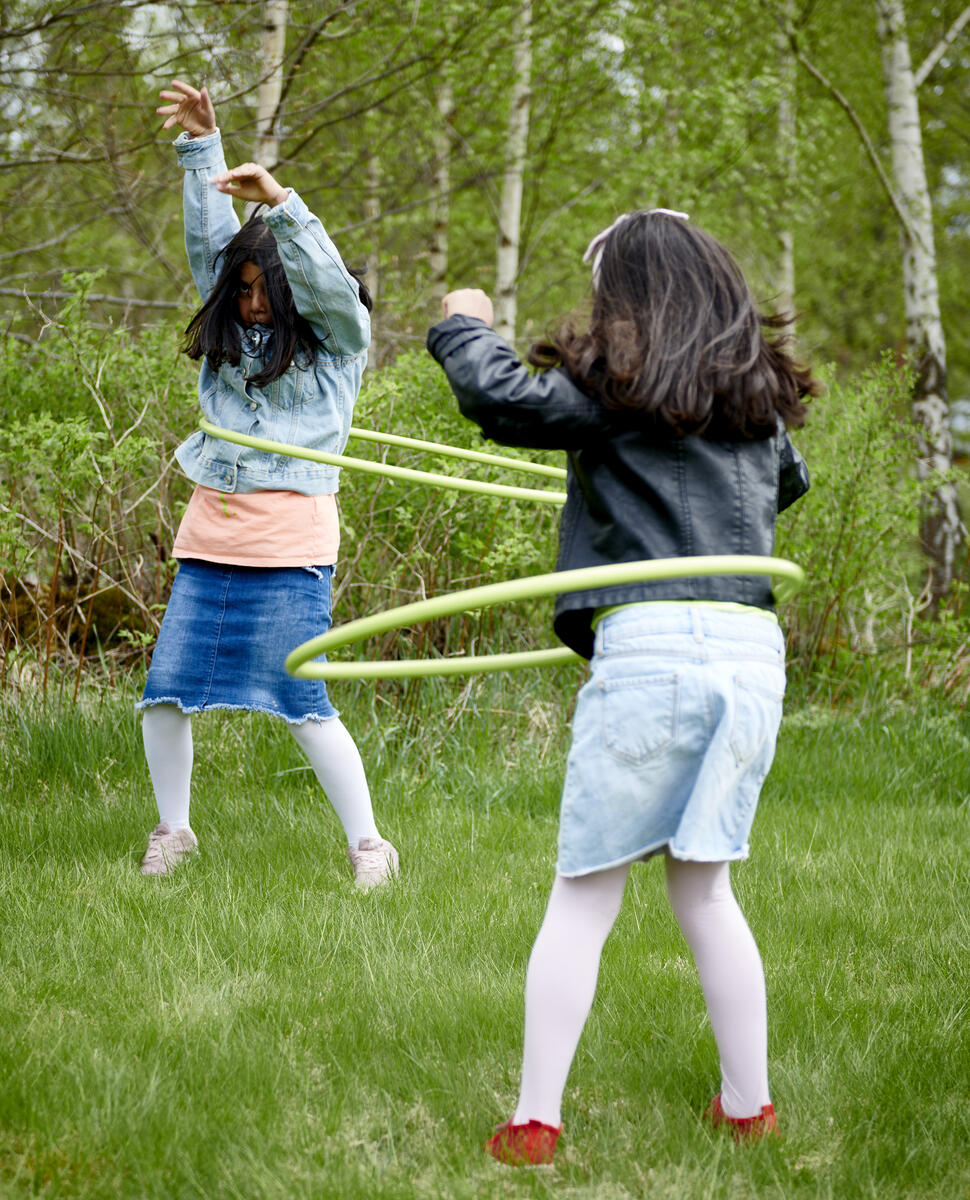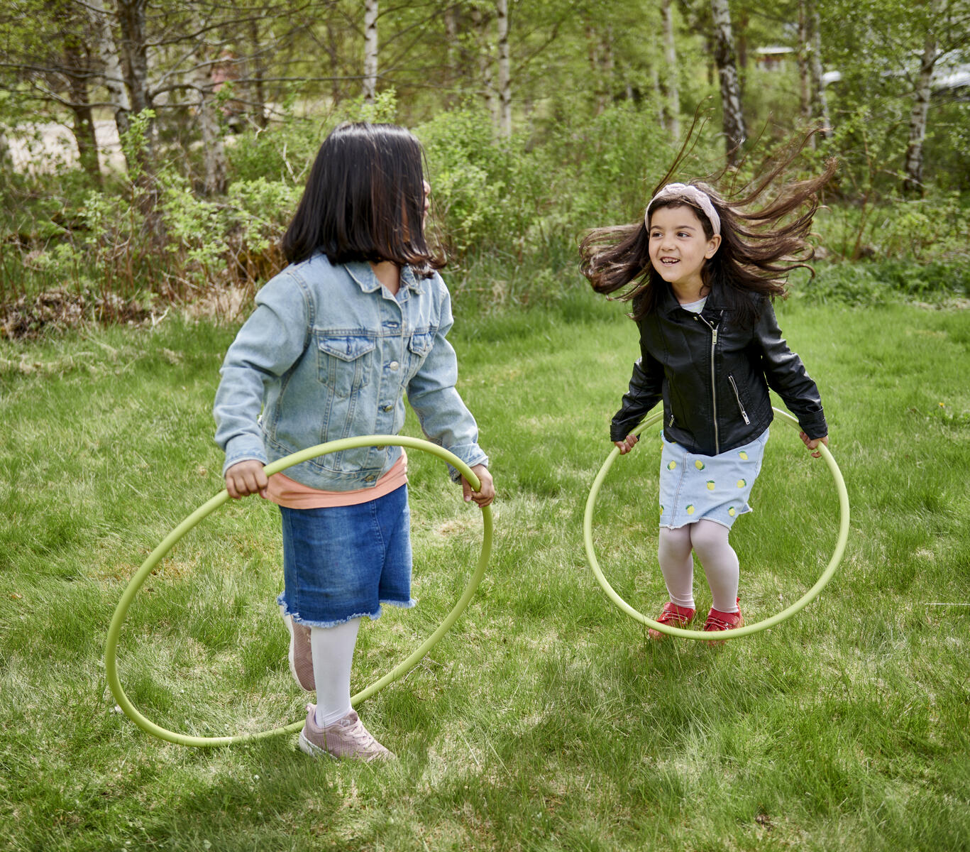 Rockringar i blandade färger. ø 60 cm. Av polypropen och polyeten. PVC-fri. Från 3 år.