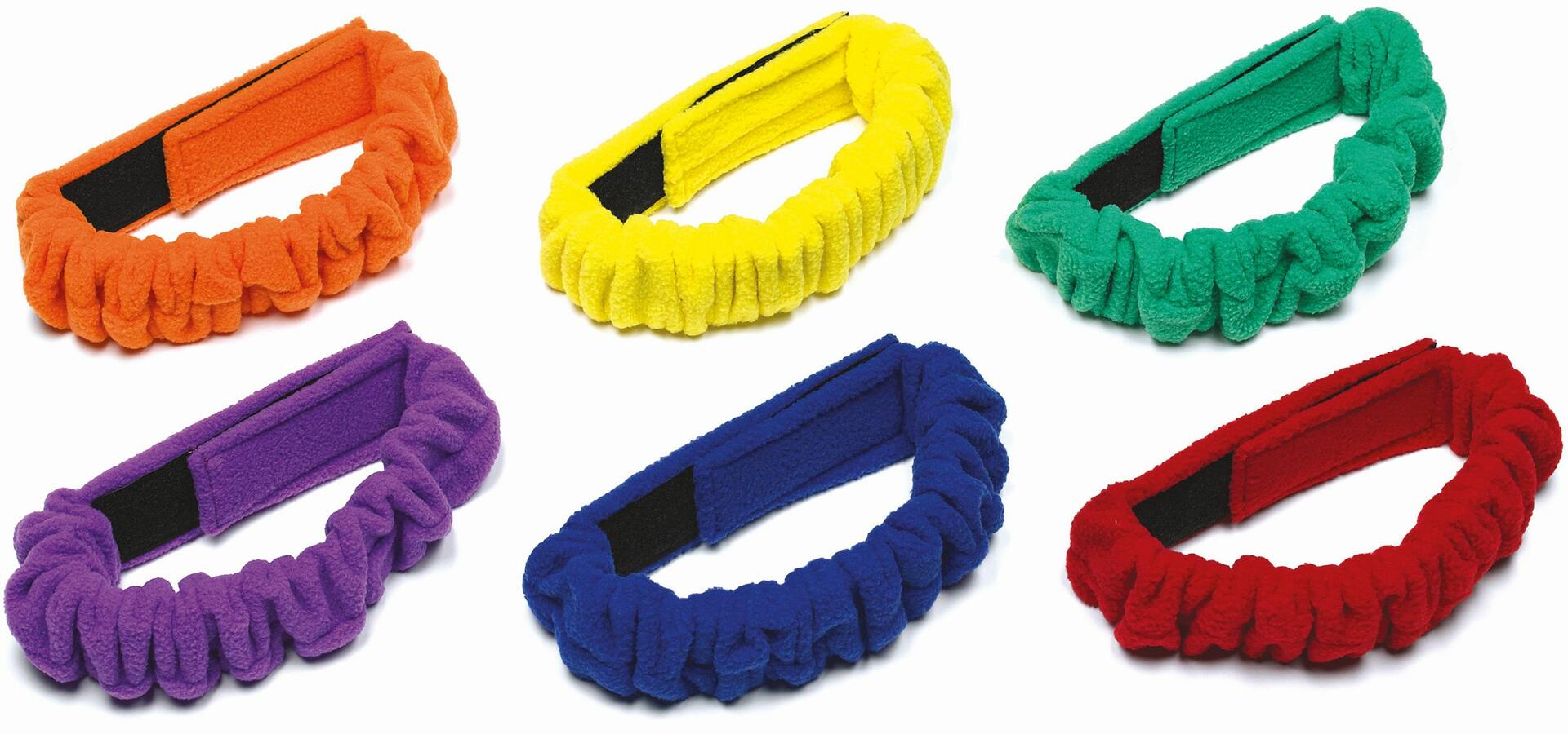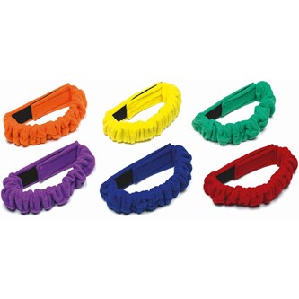 6 st/fp. Träna olika samarbetsövningar genom att sätta ihop era ben, händer eller armar när ni utför olika aktiviteter. Breda elastiska band klädda med mjukt tyg av. Med kardborrefästning för att enkelt kunna ta av och på. Mått: 4 cm breda. Av polyester.