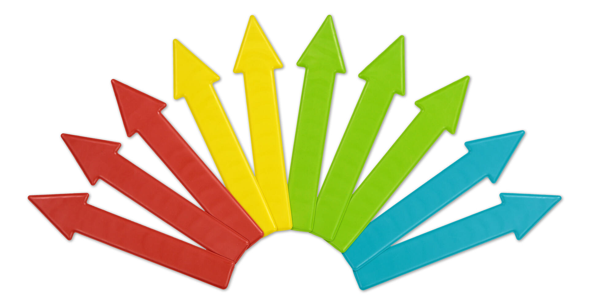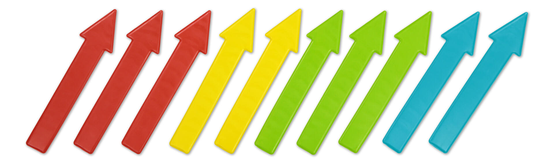 6 st/fp. Golvmarkering med pilar för att lägga upp banor och visa vilket håll man ska gå. Lämnar inga märken på golvet. Mått: 34x7 cm. Av halkfritt gummi. Från 3 år.