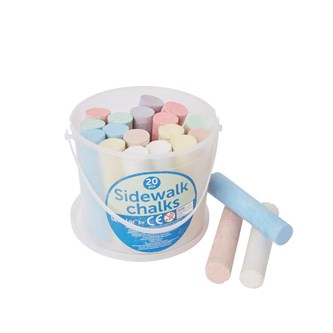 20 st/fp. Gatukritor av gips för utomhusbruk i blandade färger. För målning på asfalt, plattor m.m. Avlägsnas enkelt med vatten. Längd 11 cm. Tjocklek 2 cm. Hink av PP. PVC-fri. Från 3 år.