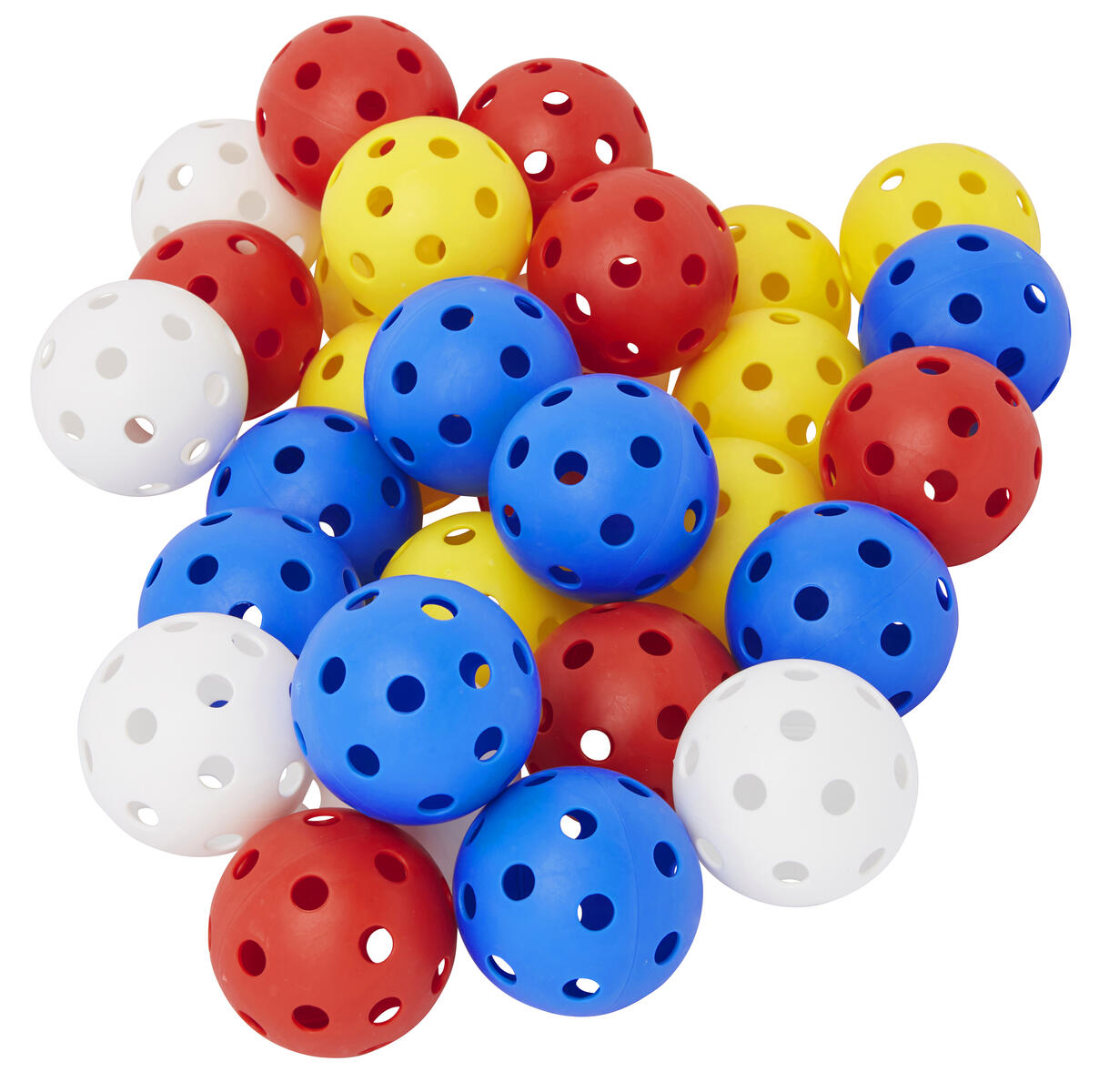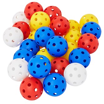 Ett stort set med 18 bollar som levereras med ett praktiskt förvaringsnät, perfekt för olika rastaktiviteter och en aktiv skoldag. Innehåller 6 basketbollar, 6 fotbollar stl. 4 och 6 gummibollar ø 21,5 cm. Bollar av gummikonstruktion som tål hårt slitage, speciellt framtagna för att klara förskolans och skolans hårda krav både på grus och asfalt. Butylblåsa. OBS! För att bollen skall hålla så länge som möjligt är det viktigt att pumpa den rätt, se pdf. PVC-fri. Passar från 3 år.