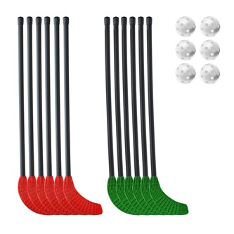10 st/fp. Slitstarka klubbor för aktivitet inom- och utomhus, samt innebandybollar som fungerar perfekt för lek- och skolbruk. Totallängd på klubbor: 99 cm, skaftlängd: 85 cm. Skaft av ABS och blad av PE. Vikt 198 g. Bollarna är av polyetenplast. ø 7 cm.