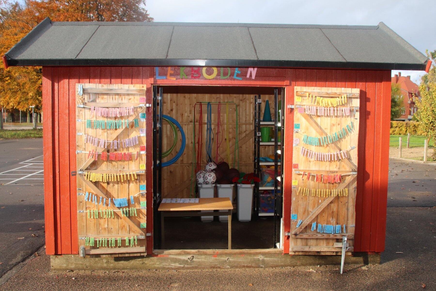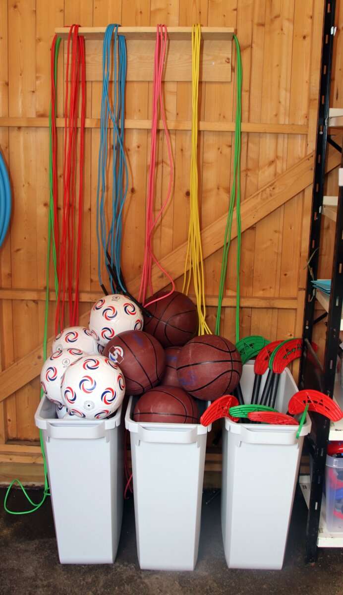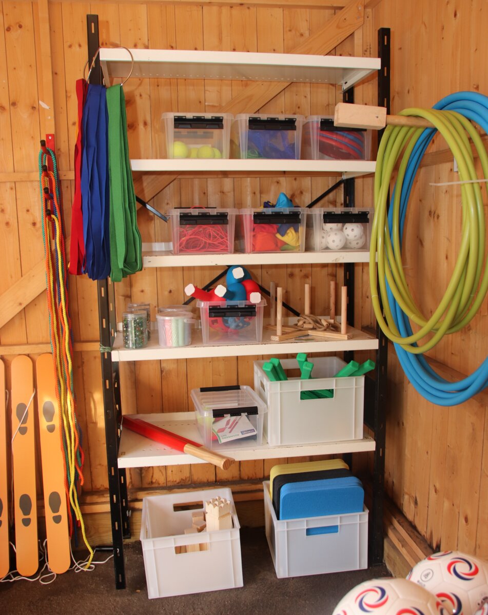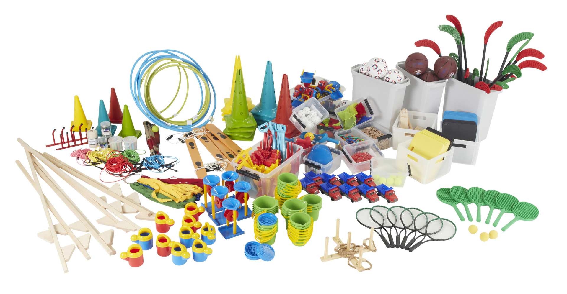 Se till att vara aktiv på rasten! Detta stora paket innehåller ett stort urval av material som kan användas till rörelse och många roliga lekar. Ett komplett set för en lekbod. Innehåller: 288 tvättklämmor i trä, 1 rulle makramégarn, 6 tennisracketar JR, 6 tennisbollar, 5 flätade hopprep i blandade färger, 12 markeringskoner 30 cm i fyra färger, 12 koner med hål 51 cm i fyra färger, 1 sandlekset med 150 delar, 8 arbetsfordon, 9 lastbilar, 10 fotbollar i stl 4, 10 basketbollar i stl 5, 10 innebandyklubbor 80 cm, 12 innebandybollar, 1 set med brännboll, 40 axelband 60 cm i fyra färger, 2 axelbandsringar, 5 rockringar 60 cm, 5 rockringar 80 cm, 1 väggförvaring till rockringar, 3 set med mjuktennis, 6 jonglersjalar, 30 ärtpåsar i 6 olika färger, 2 set fångboll, 3 frisbee, 2 hopprep 2,2 m, 5 hopprep 3 m, 3 hopprep 4 m, 2 hopprep 6 m, 2 hopprep 9 m, 1 väggförvaring för hopprep, 4 twistband, 30 sittdynor med handtag i 3 olika färger, 1 ringkastspel, 2 set styltor 160 cm, 2 set styltor 180 cm, 2 set parskidor, 2 pack med 20 utomhuskritor, 1 kubbspel, 3 set med glaskulor, 2 förvaringsboxar 47 L, 3 förvaringsboxar 60L, 9 förvaringsboxar 10L och 3 lekbackar vit. PVC-fri.