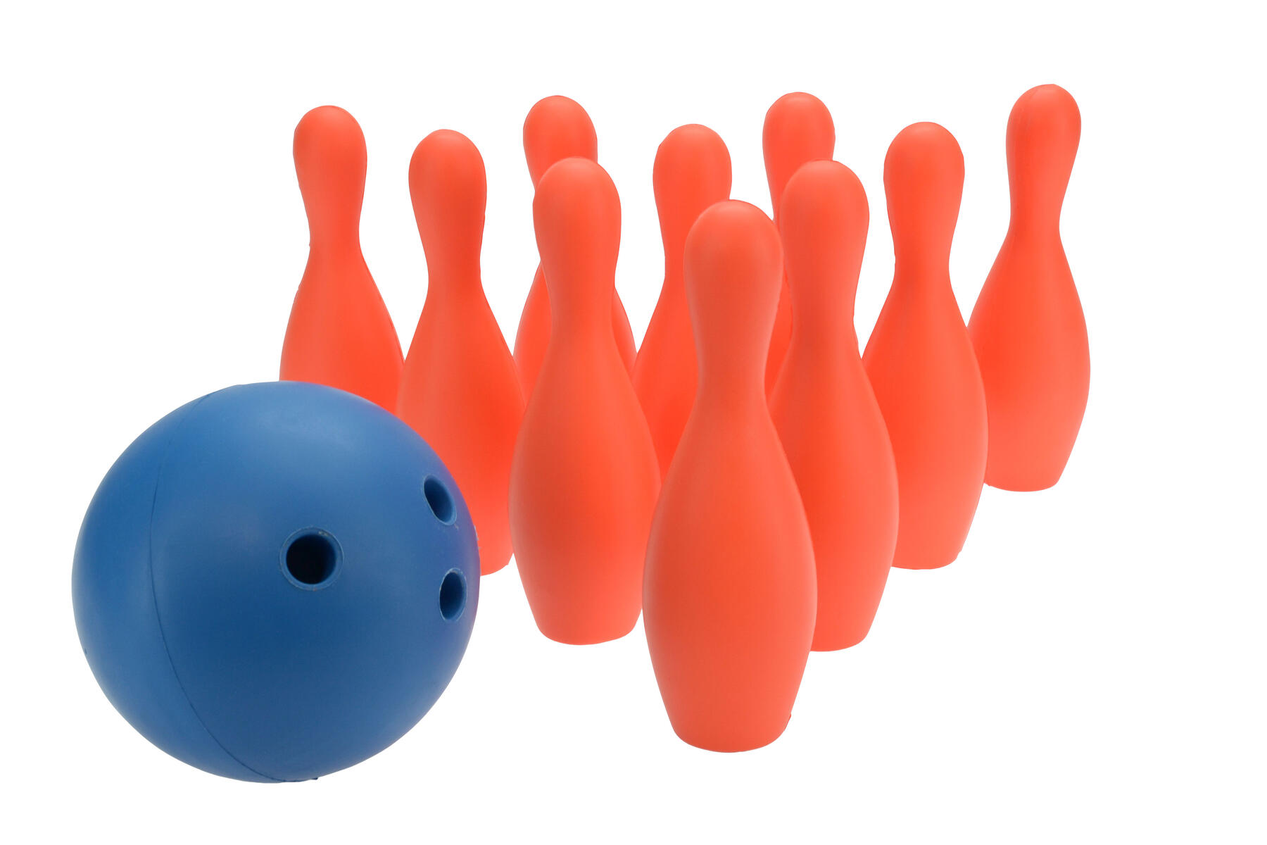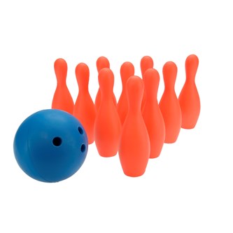Ett bowlingset i skum med mjuka tysta käglor. Med en bas av järn och ett yttre hölje av en mjuk ABS. 6 käglor H20 cm, ett klot ø 12 cm. PVC-fri. Från 3 år.