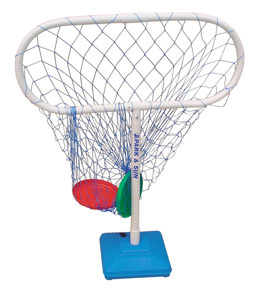 Ett enkelt mål med stativ som kan användas både inom- och utomhus. För kastövningar, frisbee, fotboll mm. Justerbar höjd i 3 lägen, mellan 88 cm och 135 cm. Ringen är 38x90 cm. Foten fylls med vatten eller sand. Av PVC, utan förbjudna ftalater.