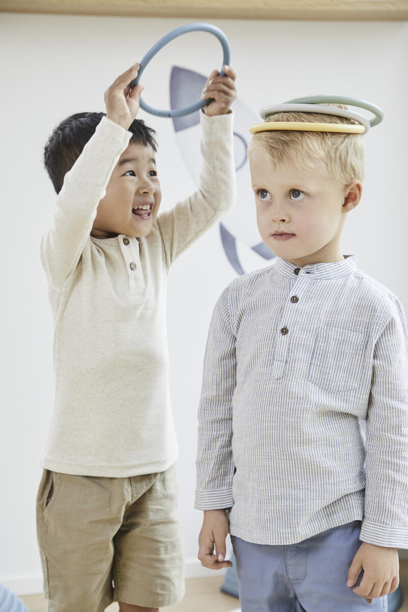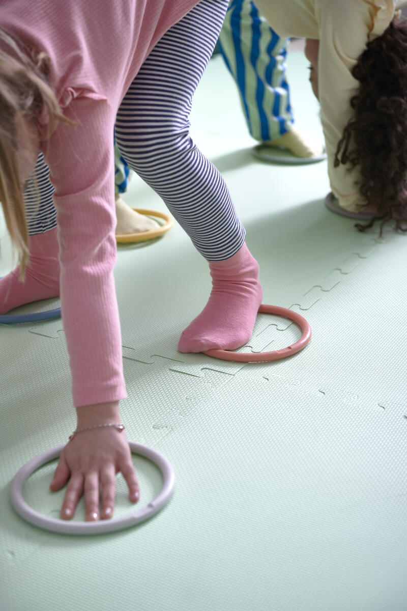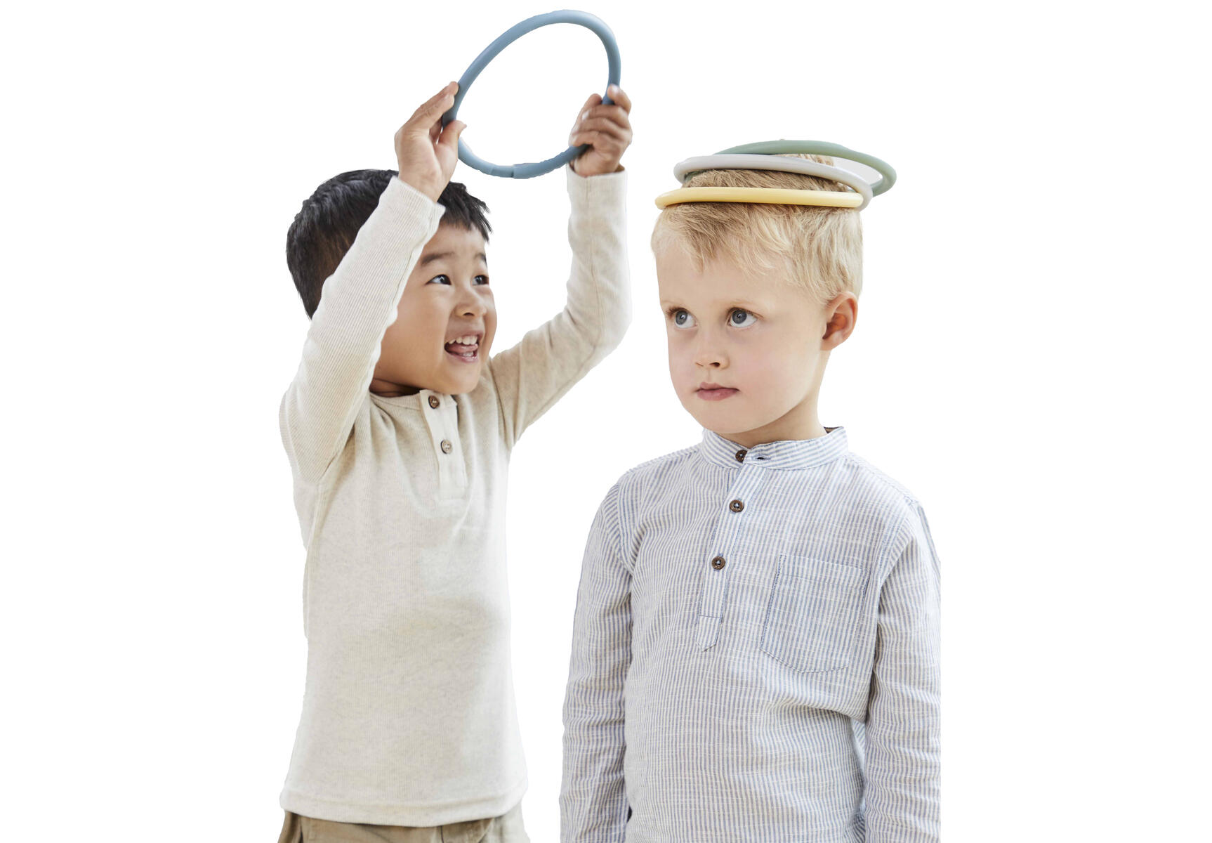 6 st/fp. Ringar i neutrala färger, gjorda av mjuk och vattenavvisande TPE-gummi. Ett skönt ytskikt som är bra för sensorisk stimulering. Kan även användas vid jonglering, kast- och fångövningar, räkneövningar m.m. Passar både individuellt och i grupp. Tränar öga- och handkoordination. Mått: ø 16,4 cm. PVC-fri. Från 1½ år.