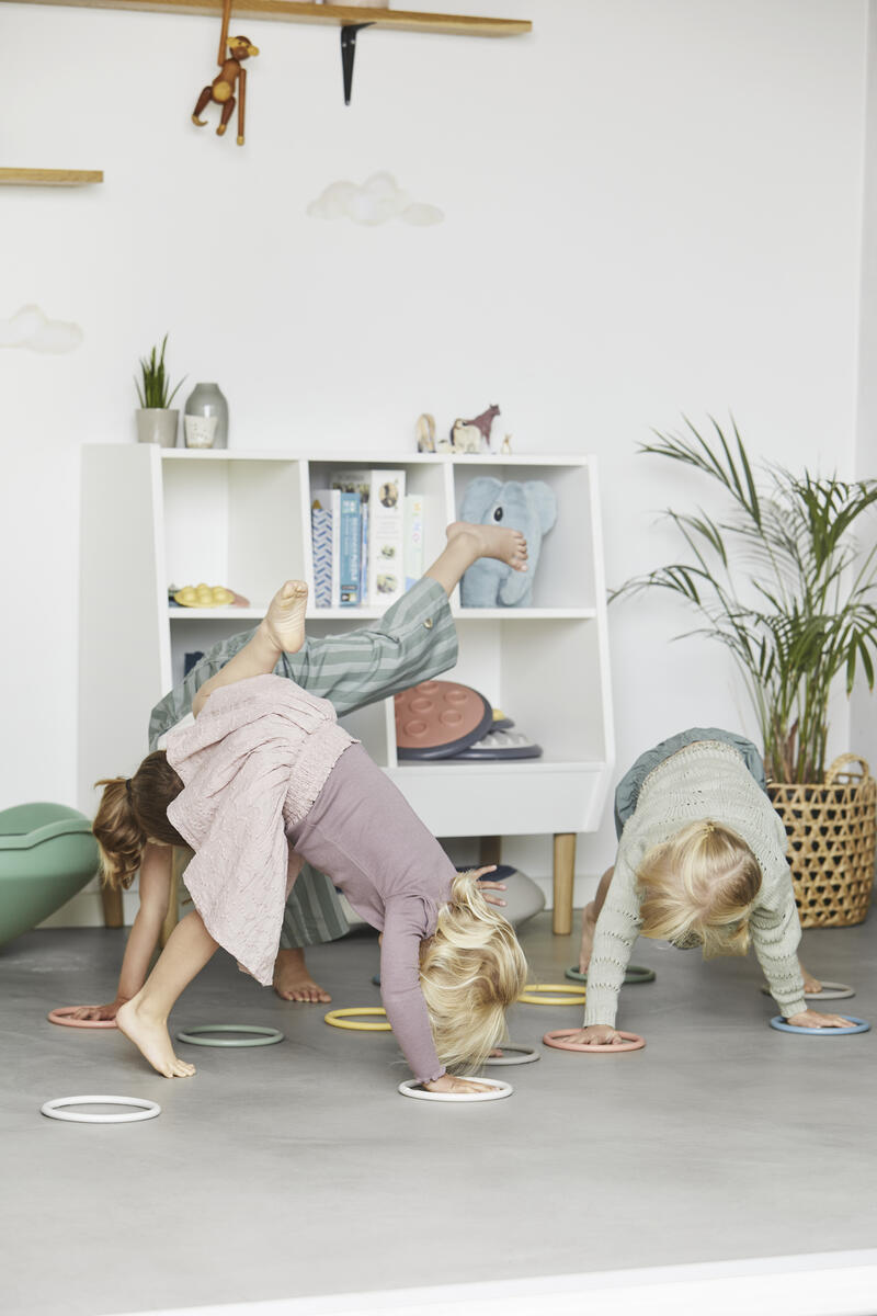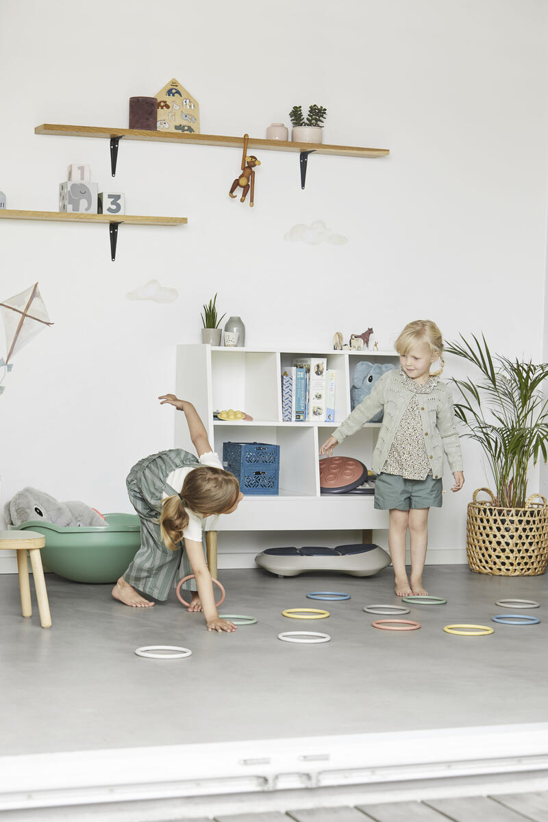 Ringar av gummi som kan användas till shuffleboard, men även många andra olika aktiviteter: kasta och fånga, rulla till varandra, som mål eller balansövningar. Ringarna glider bäst på vinylgolv eller polerat trägolv. Av gummi. Mått: ø 16 cm. PVC-fri.